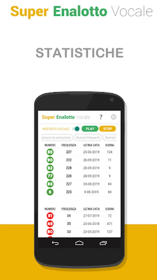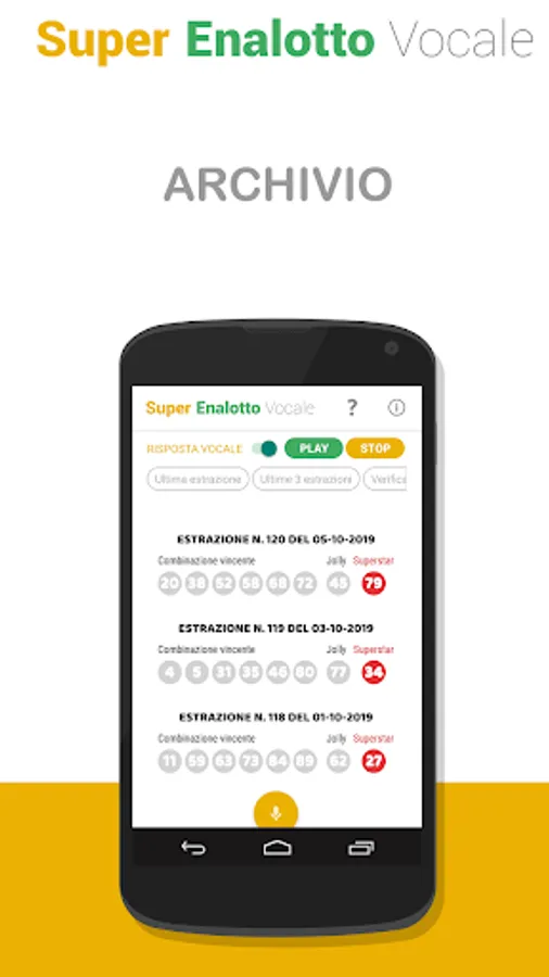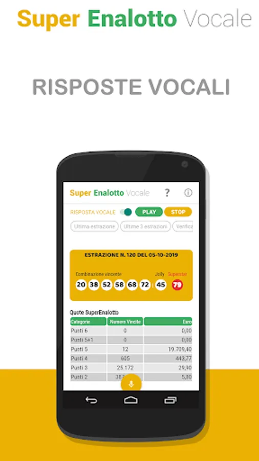 View the latest SuperEnalotto draw and, thanks to the speech synthesis engine, you can listen to the numbers extracted.