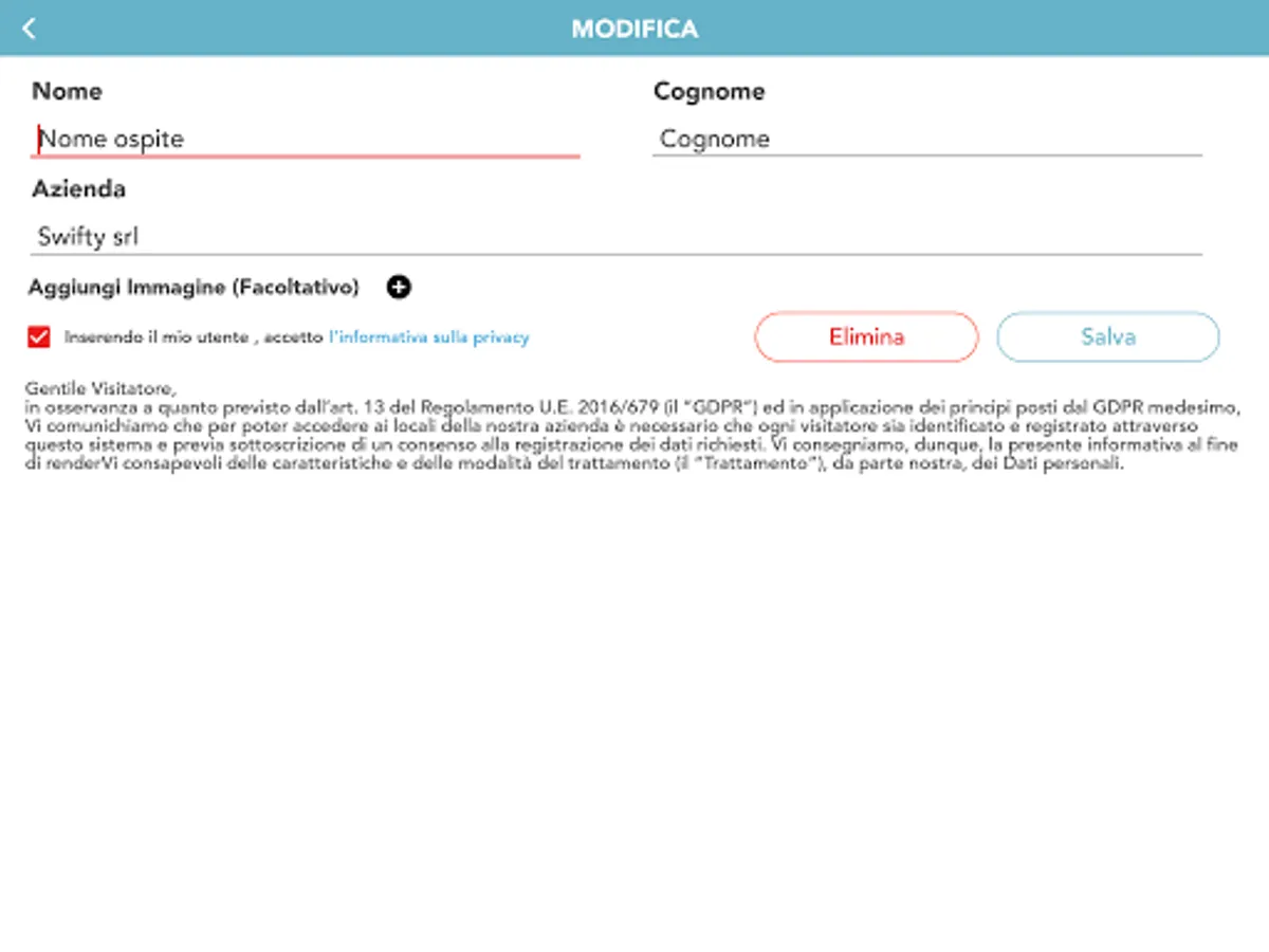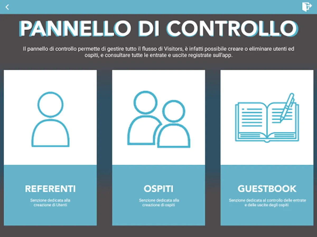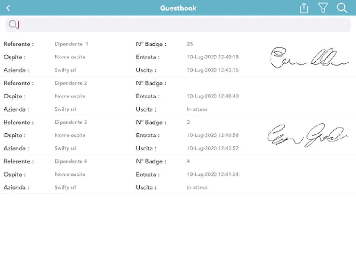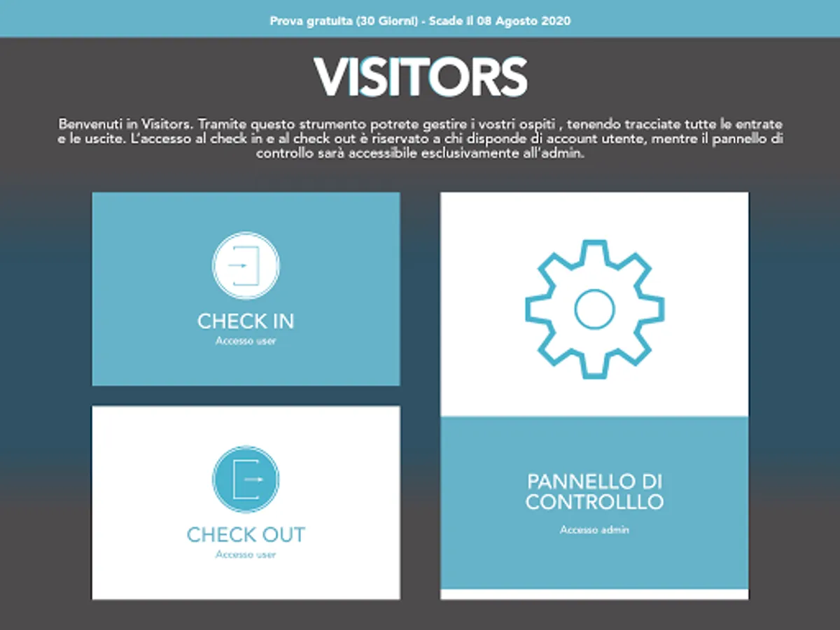 Visitors allows you to manage visitors even if you have multiple access points to the company, in fact the data is centralized and synchronized in real time. It is safely possible to enter from one entrance and exit from another in complete autonomy.