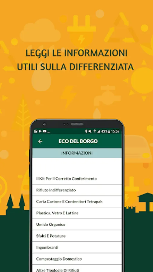 Eco del Borgo is the tool to make waste collection in the municipality of Fidenza simple and error-free: with this app you will be able to know exactly in which waste bin every waste goes, saving time and eliminating the risk of fines and penalties.