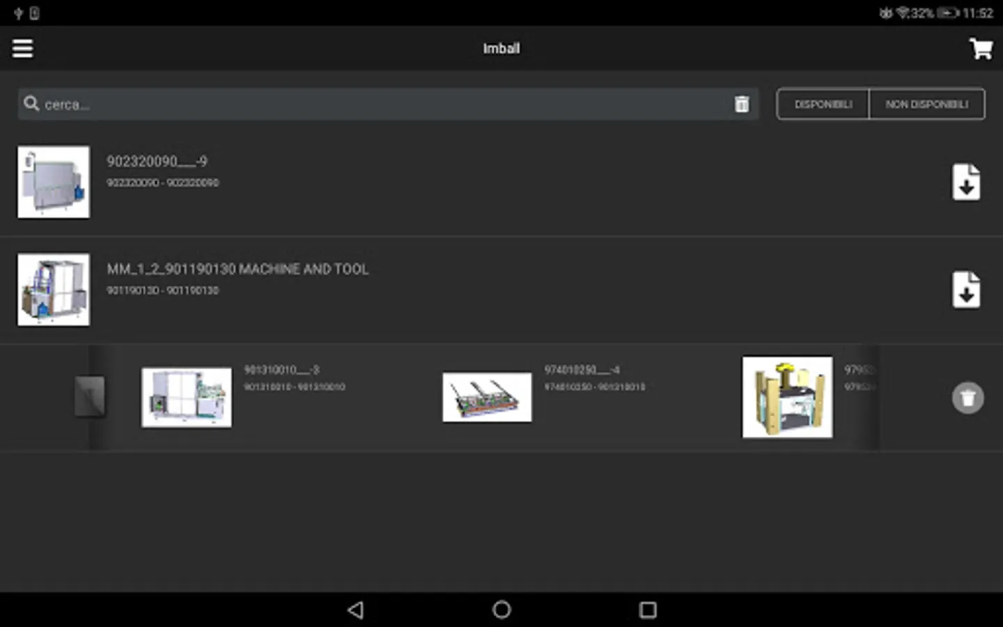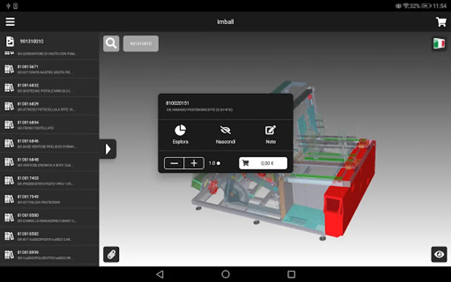 The app allows you to download the catalog of the desired part of the machine. The use of the tablet in front of the machine allows a rapid identification of the desired spare part.