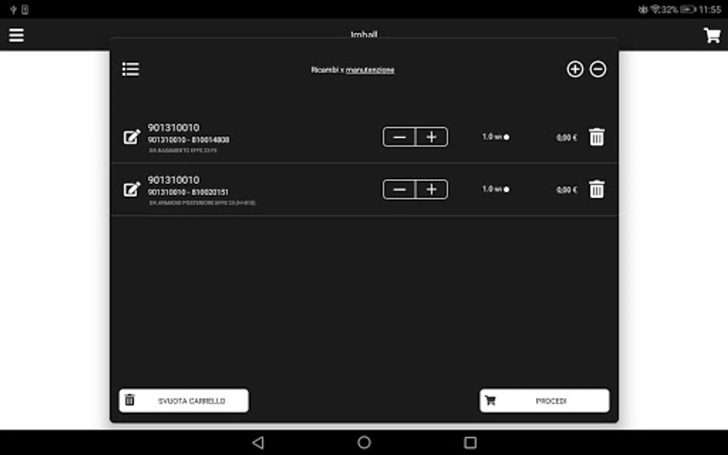 Spare parts can be identified by mobile devices and QR codes: in this way it is possible to access an exploded view for the part of interest, send the request and access the trolley directly.