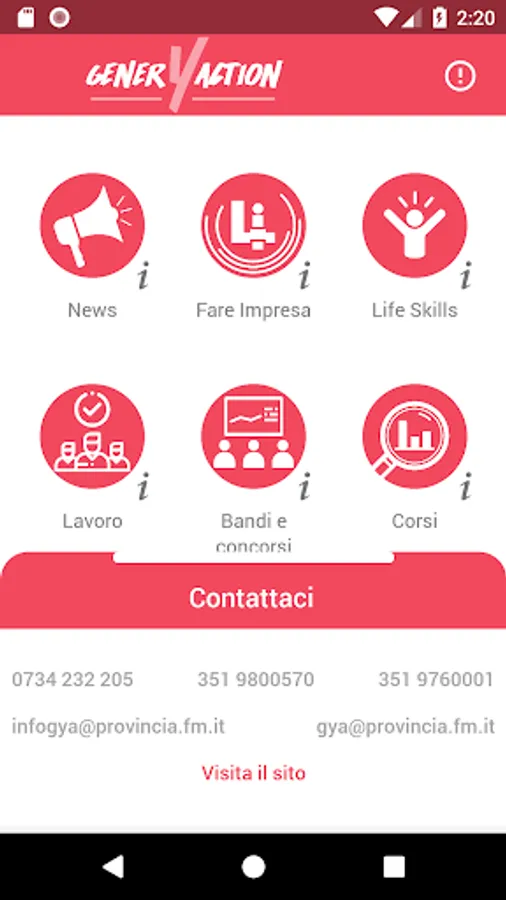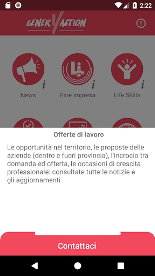 This app will allow you to find constant and detailed information on job offers, calls, competitions, experiences abroad, projects of various types and, of course, real-time news on all activities related to Gener (Y) Action (among these workshops , training and visits to the company).