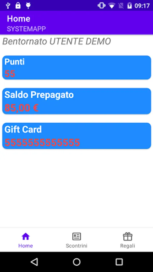 Inside, points, redeemable gifts and your receipts will be displayed.