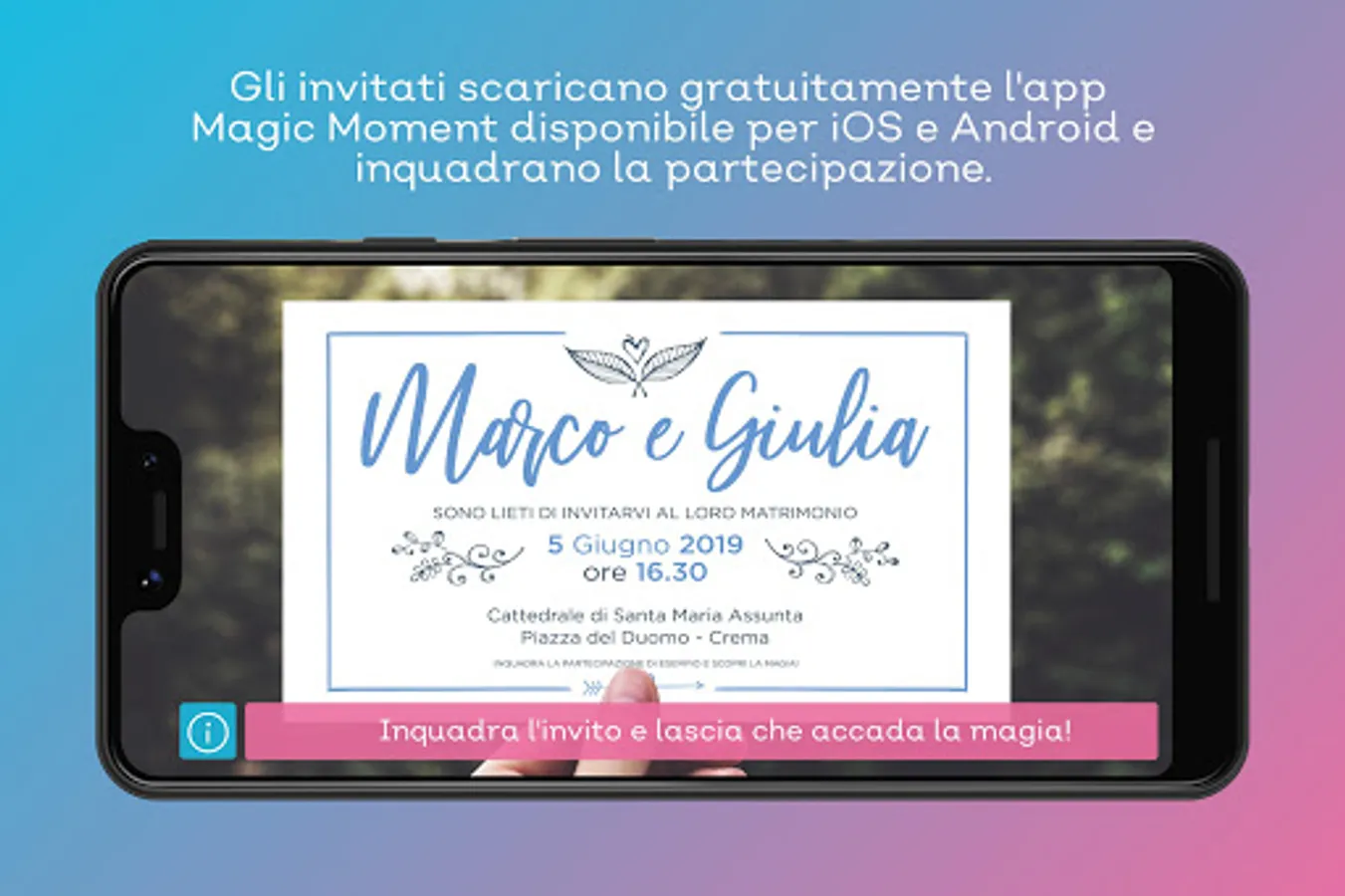 • Guests download the Magic Moment app available for iOS and Android for free and frame participation.