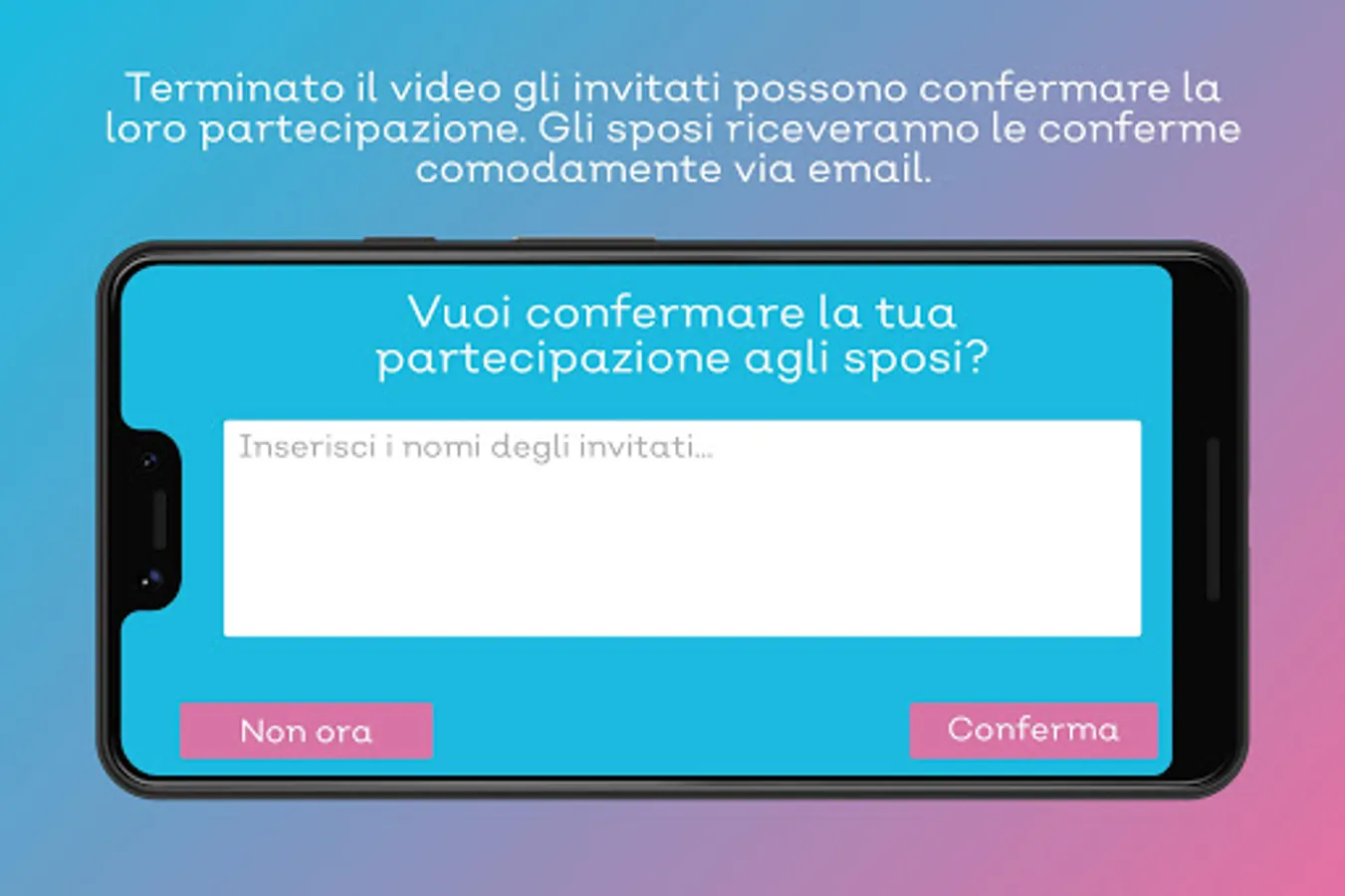• After the video, the guests can confirm their participation. The spouses will receive the confirmations comfortably via email.
