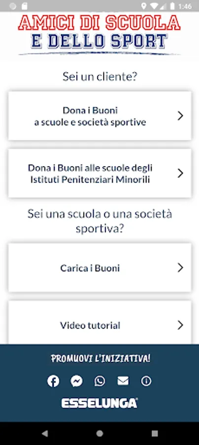 Vouchers can be loaded independently via the Amici di Scuola e dello Sport App. Simply log in, select your school or ASD/SSD, click on "Scan the code" and frame the barcode using your smartphone's camera. With collected vouchers, schools and sports clubs will be able to request their favorite prizes for free by choosing them from the dedicated catalogue.