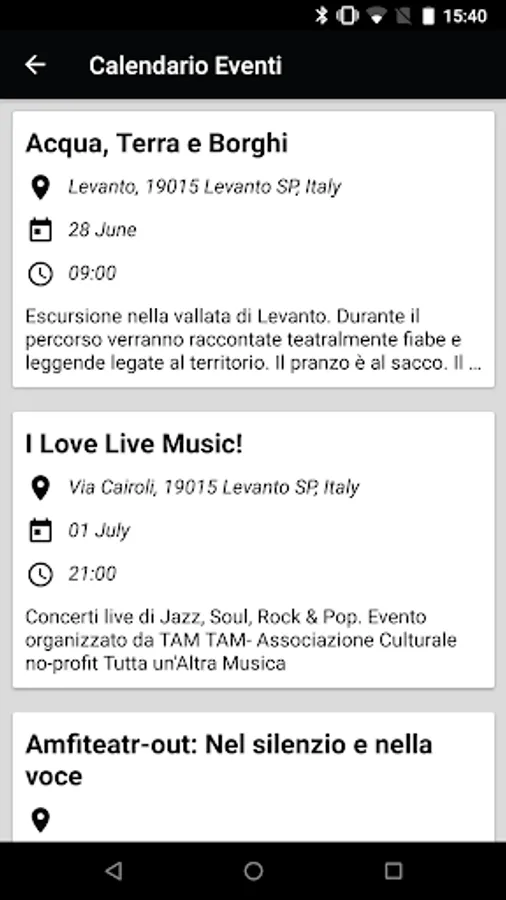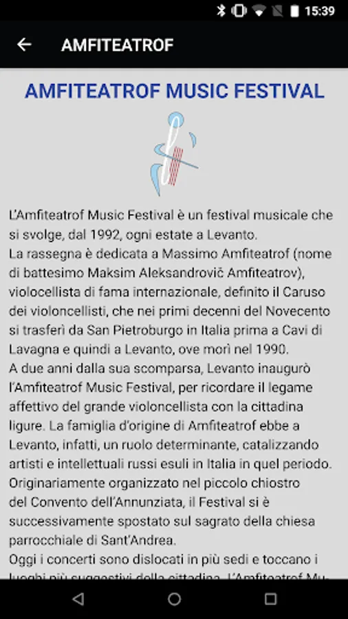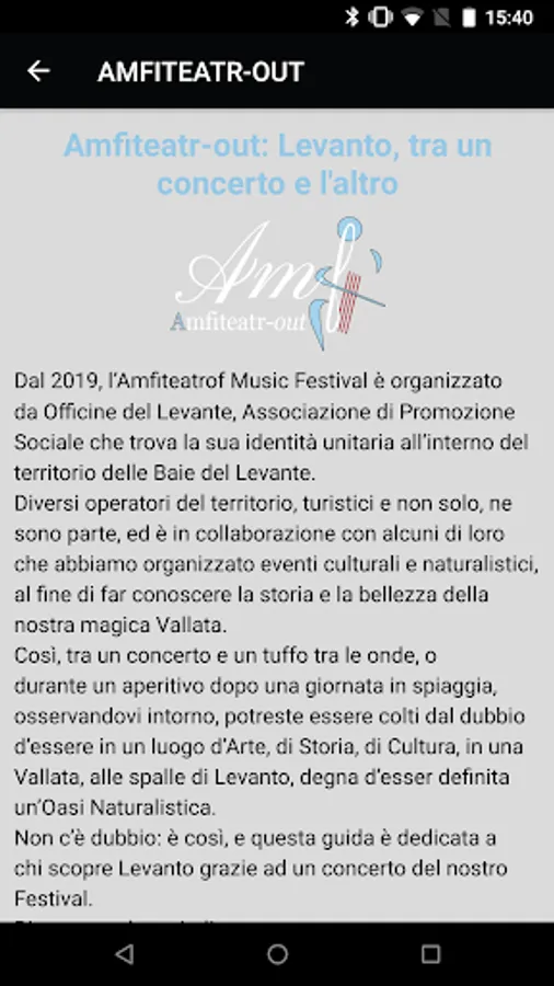 Simple simple a first realization of a dream of the tourist: in a single site, in a single app, all the information on what I can do in Levanto and its surroundings between one concert and another of the Amfiteatrof Festival, from 4th July to 7th September .