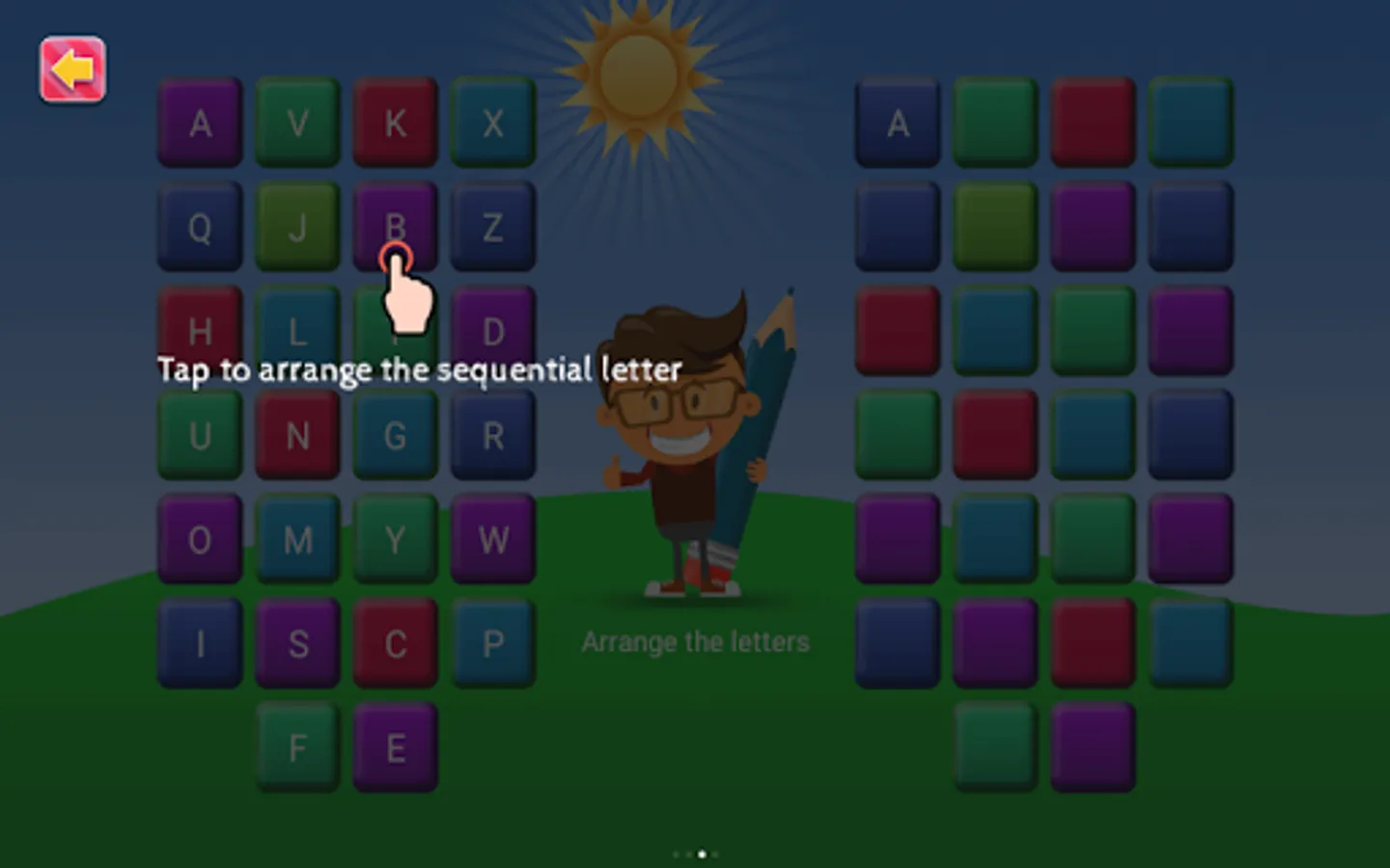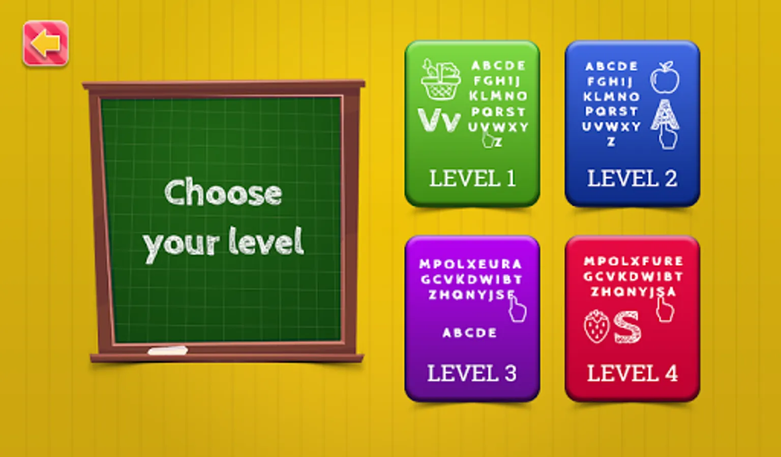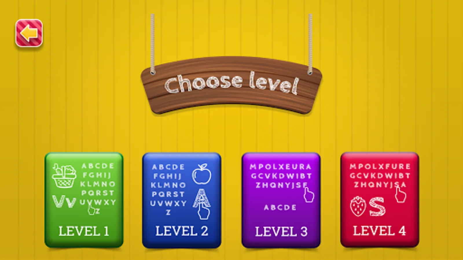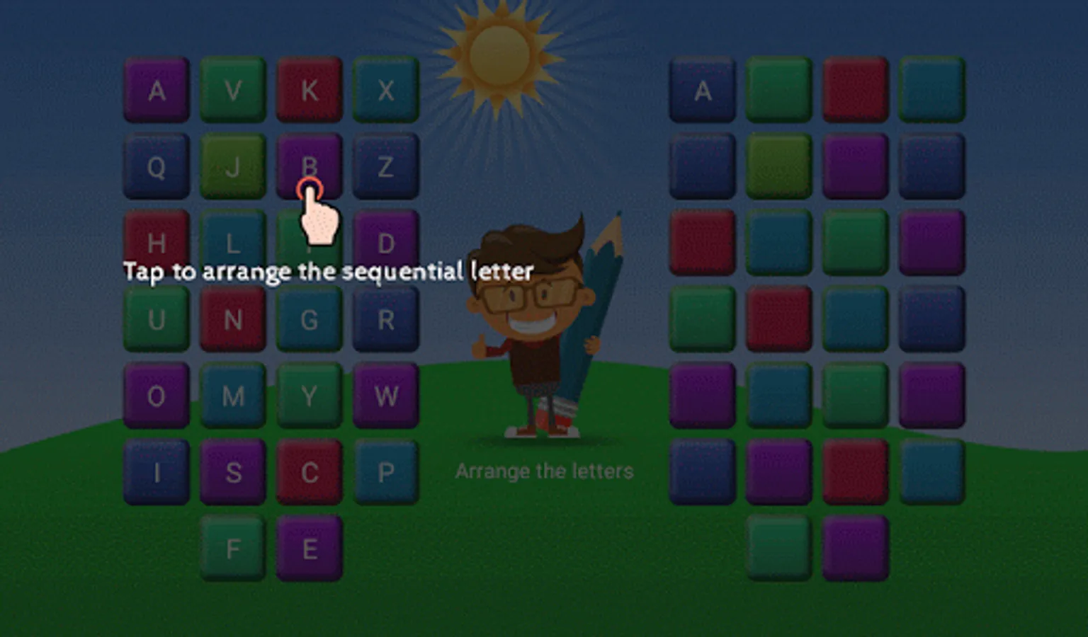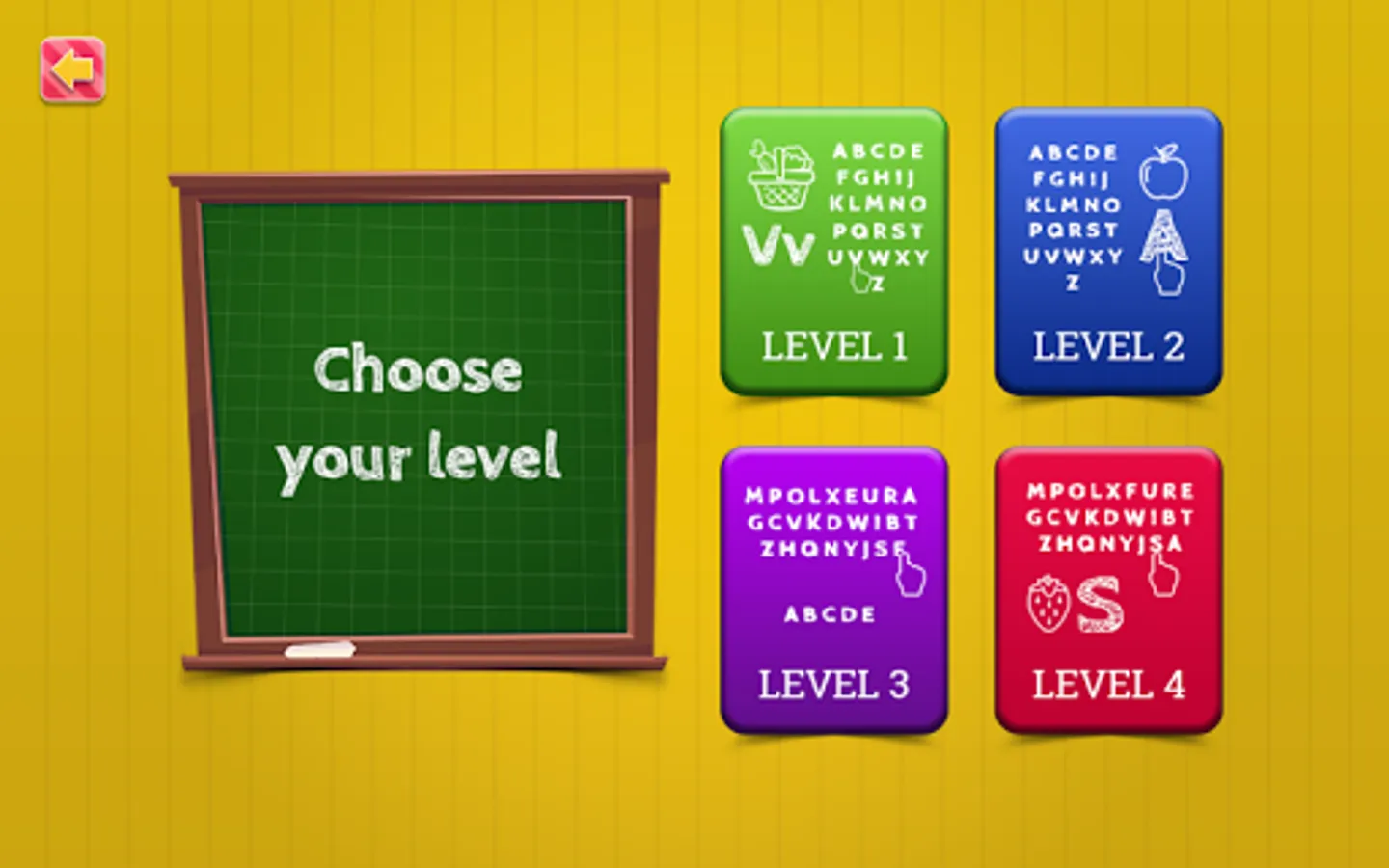 Level 1 – Lets the child know A-Z in a sequential order. This base level sets the foundation for the rest of the levels on the app.