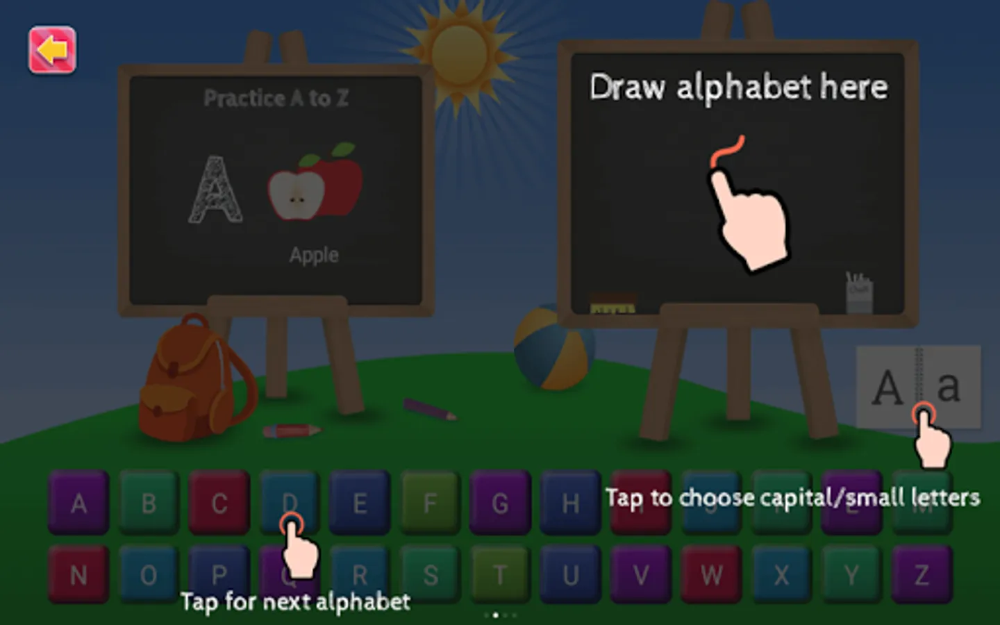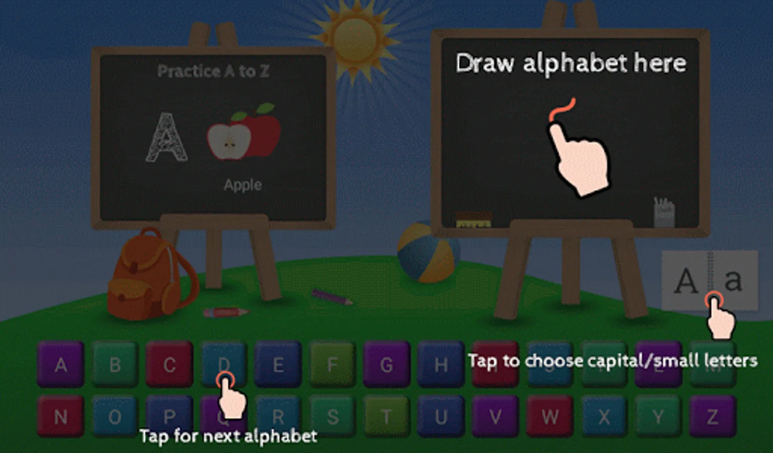 Level 2 – Lets the child relate the alphabets with objects & practice it.