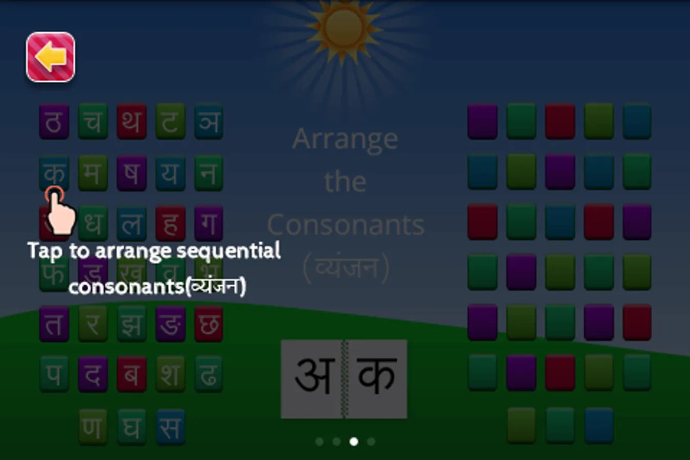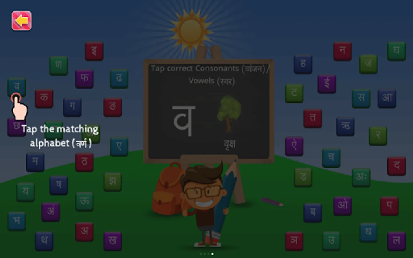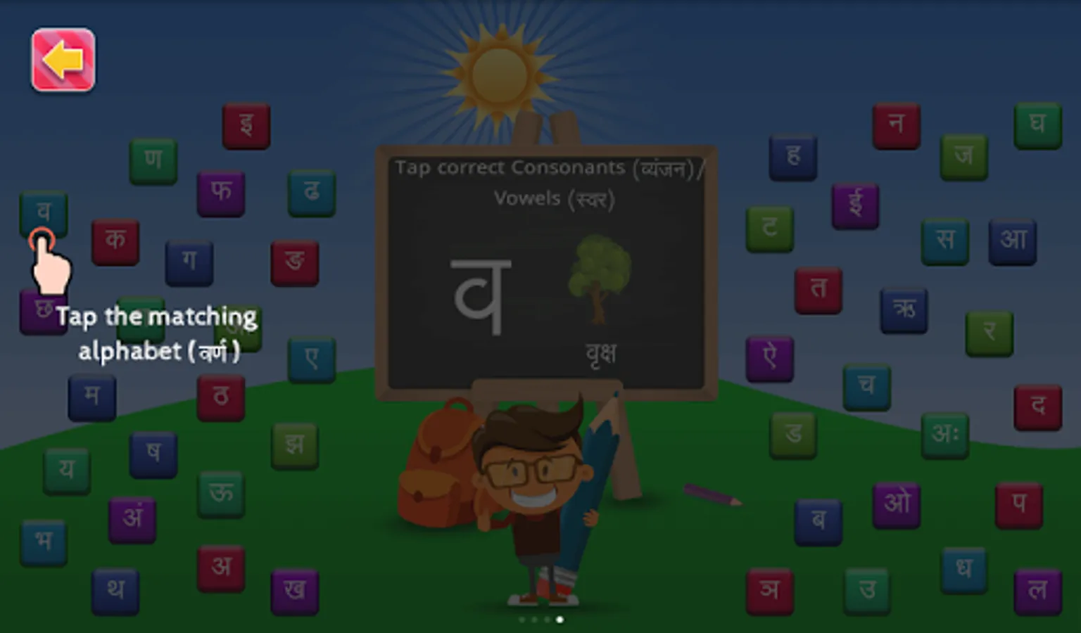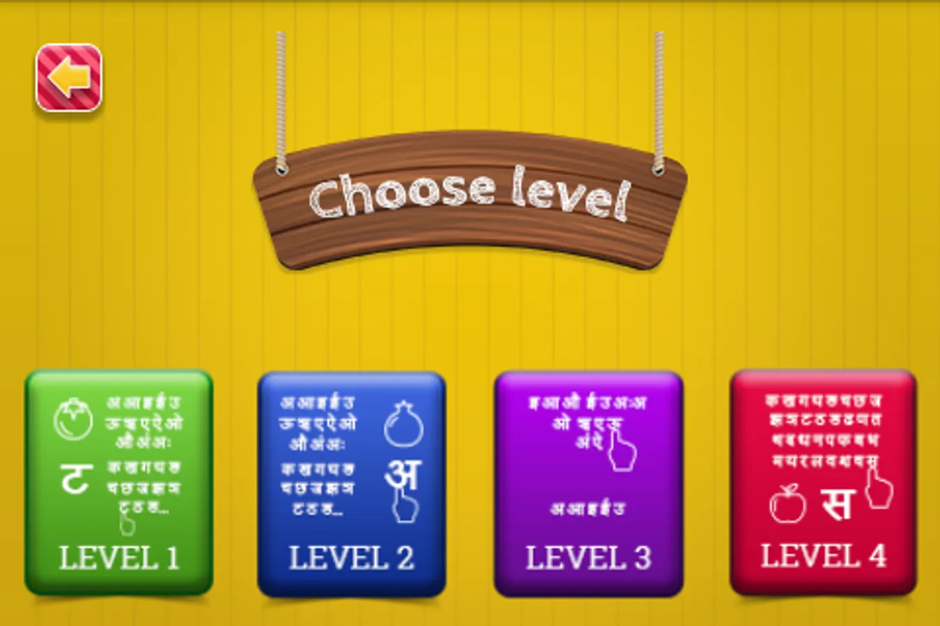 Level 1 – Lets the child know hindi alphabets i.e. vowels and consonants in a sequential order. This base level sets the foundation for the rest of the levels on the app.
