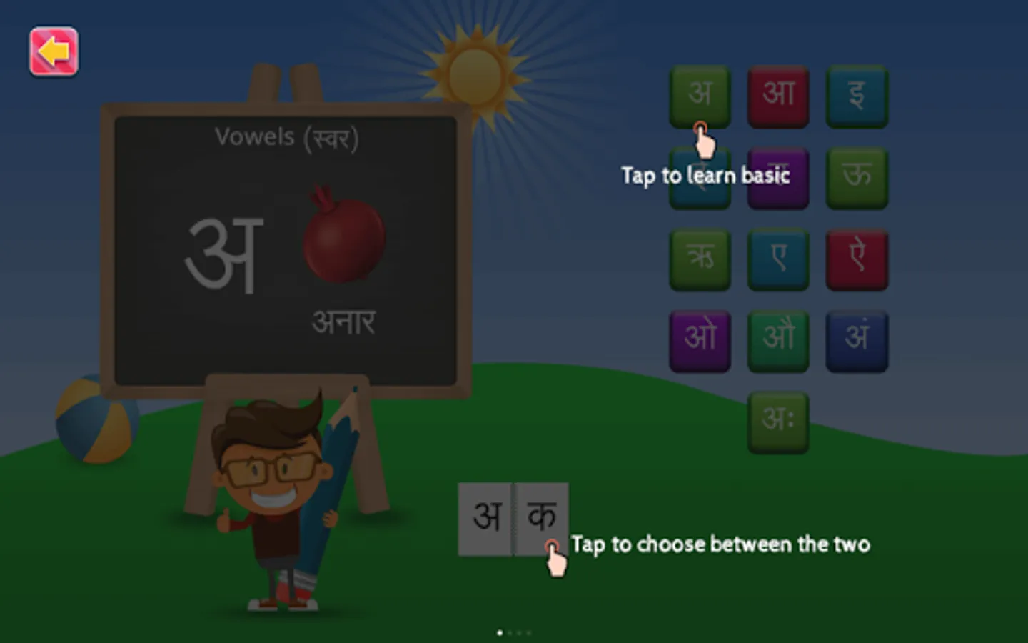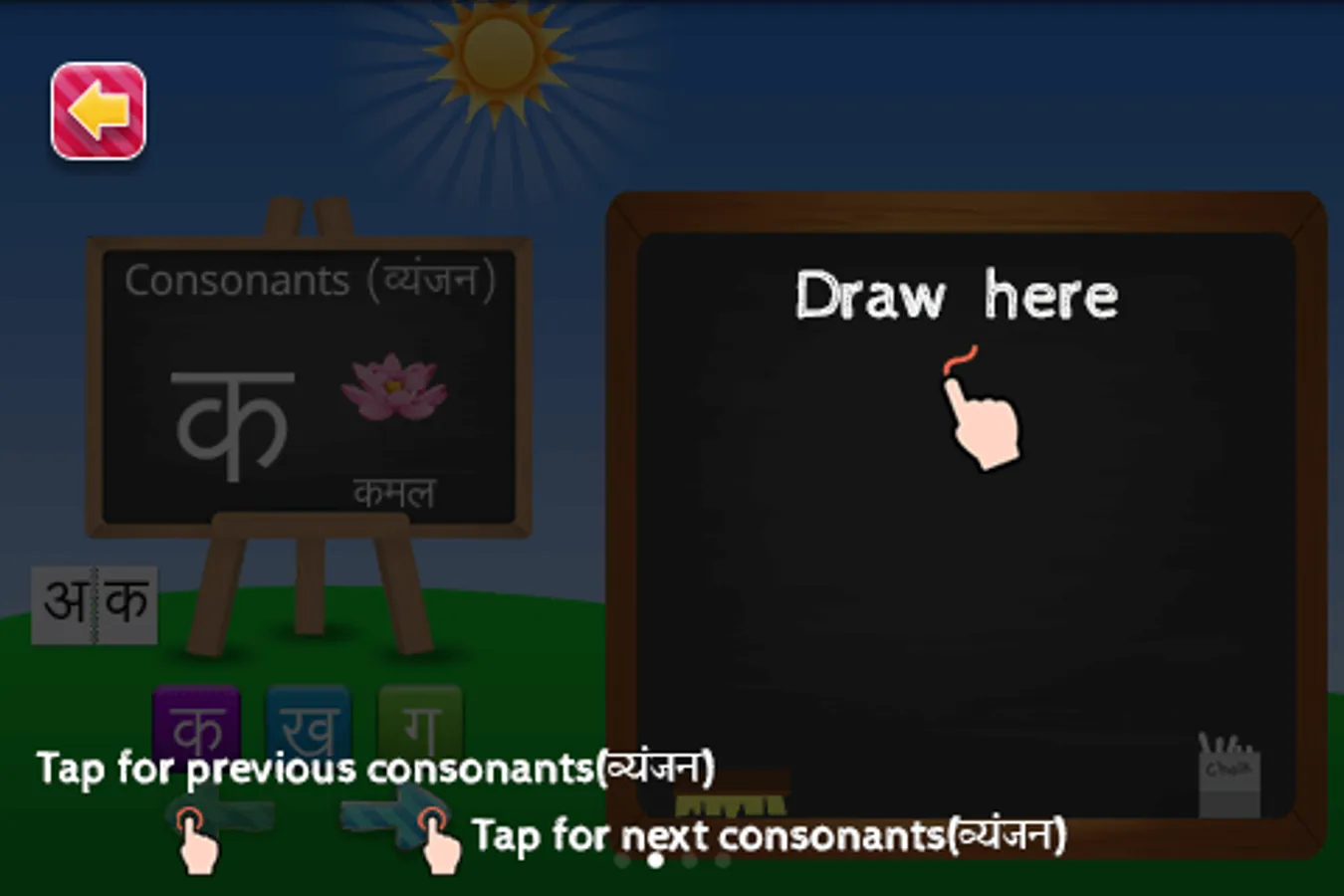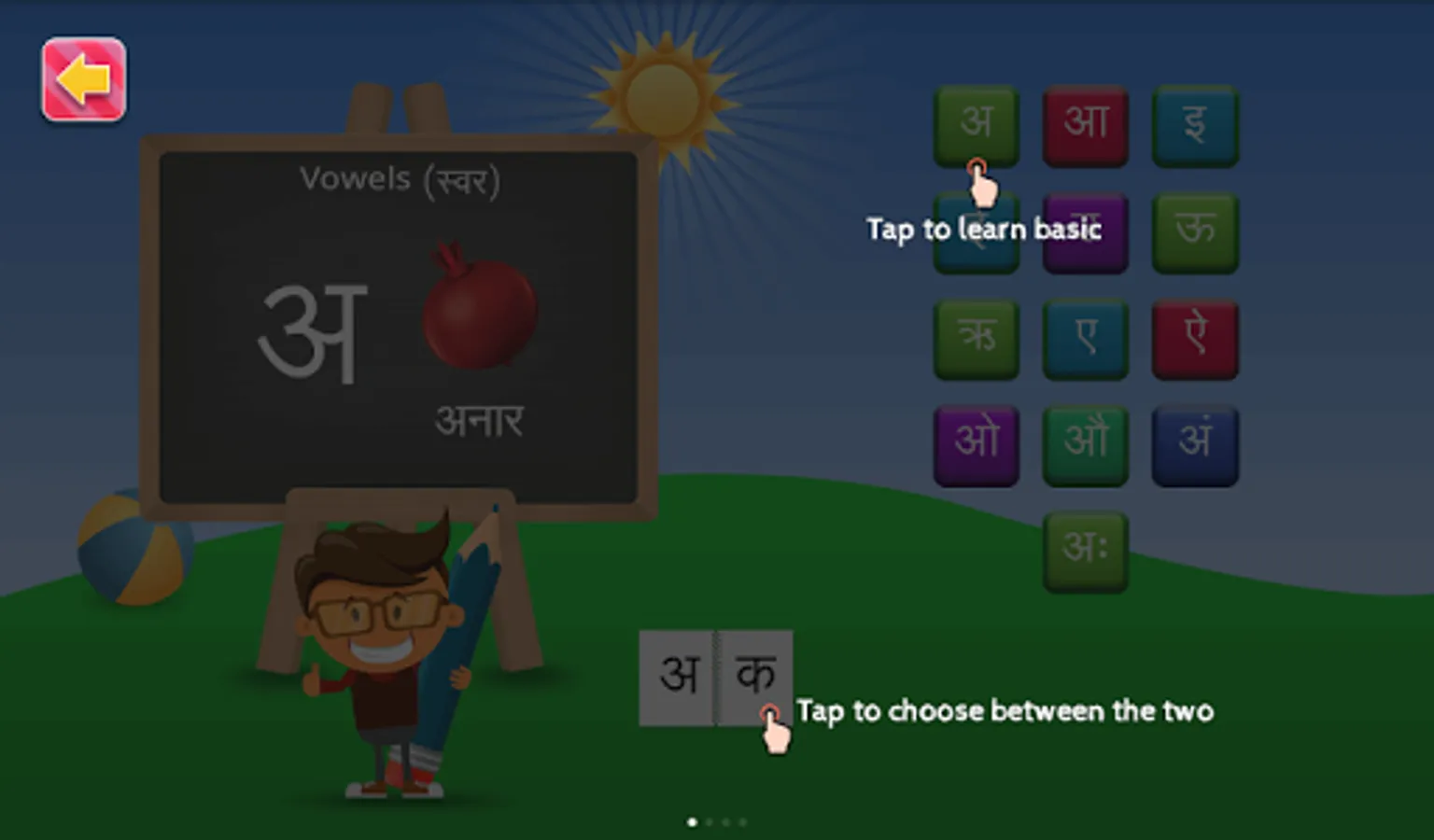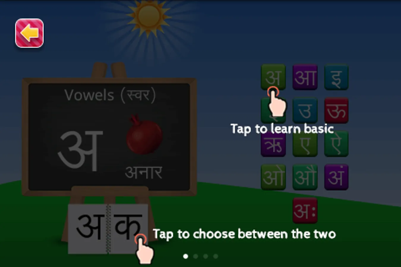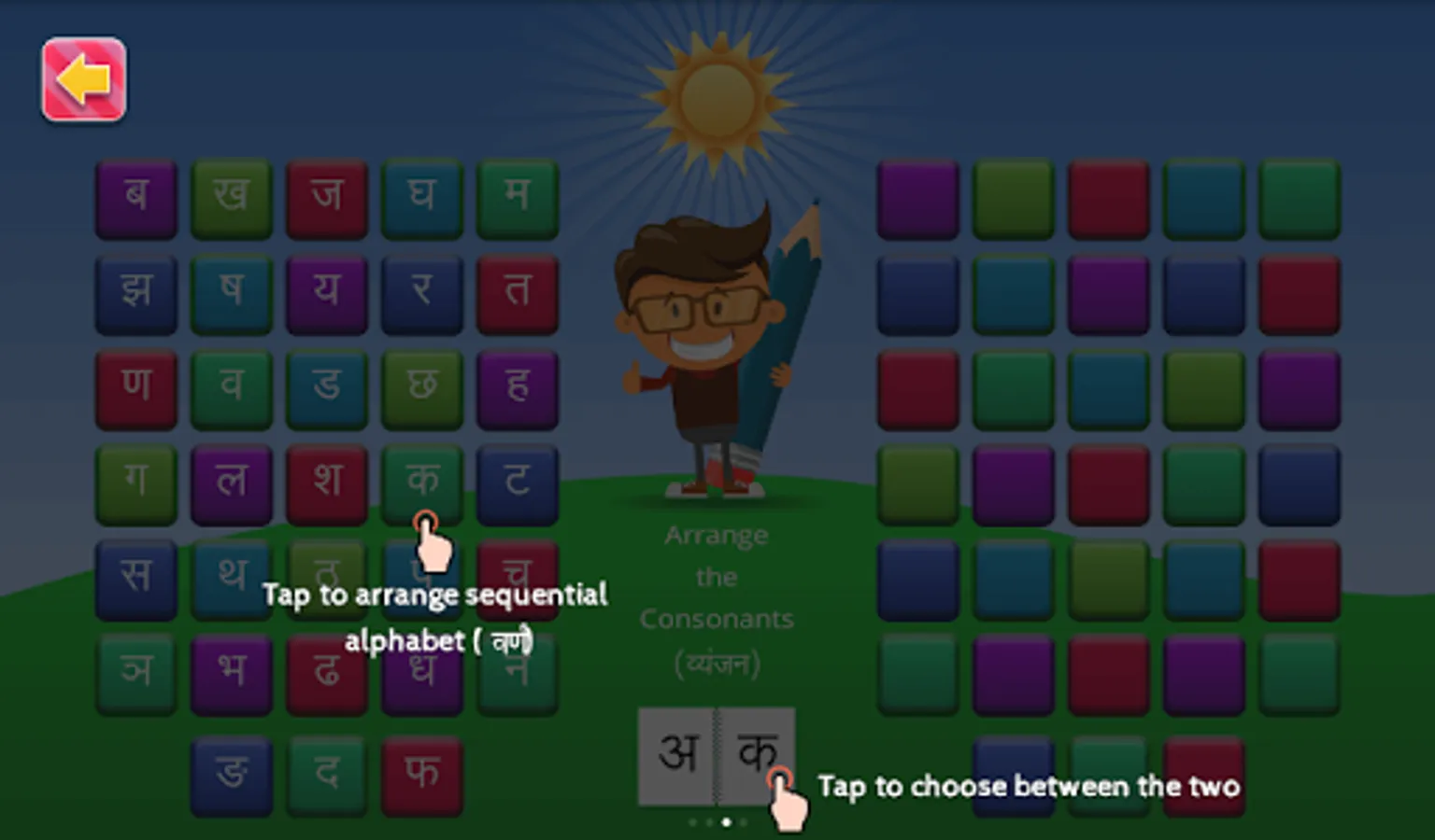 Level 1 – Lets the child know hindi alphabets i.e. vowels and consonants in a sequential order. This base level sets the foundation for the rest of the levels on the app.