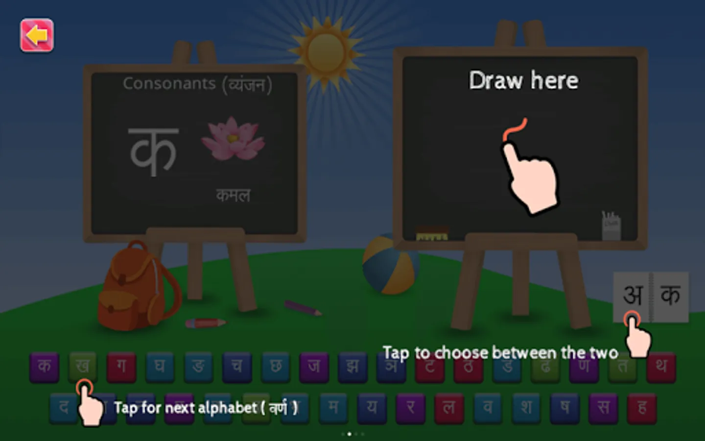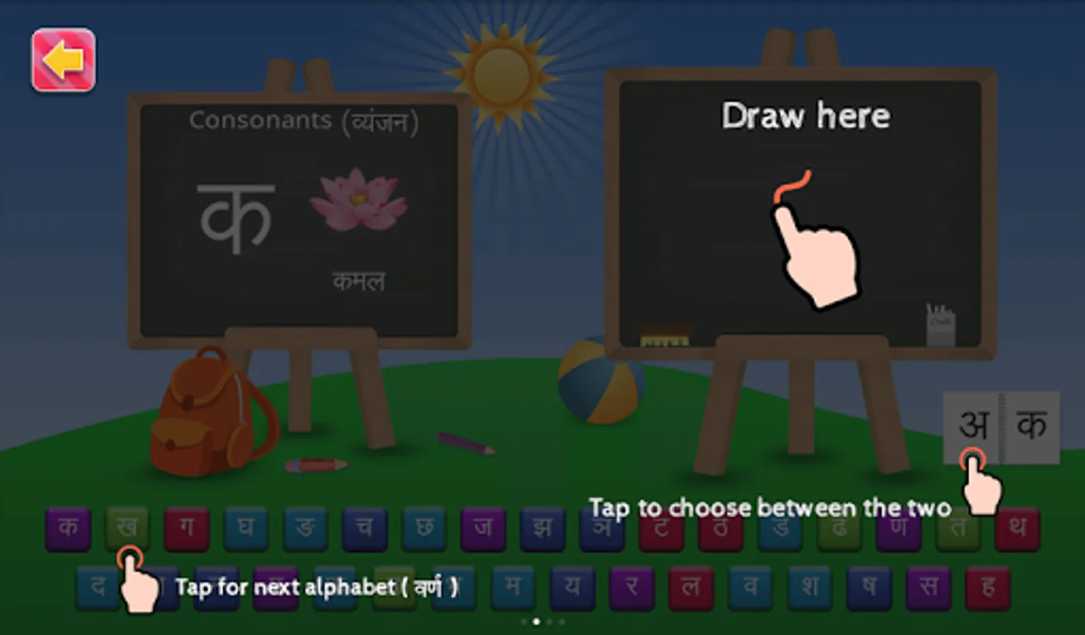 Level 2 – Lets the child relate the hindi alphabets with objects & practice it.