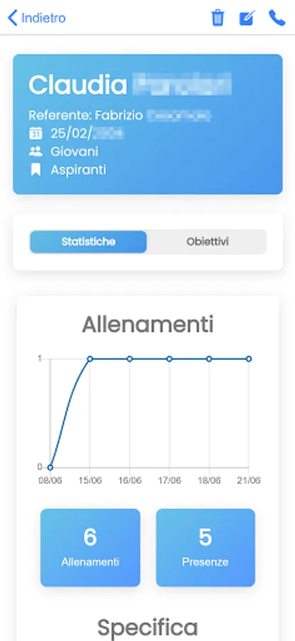 App for viewing training statistics and equipment for Falconeri Ski Team athletes