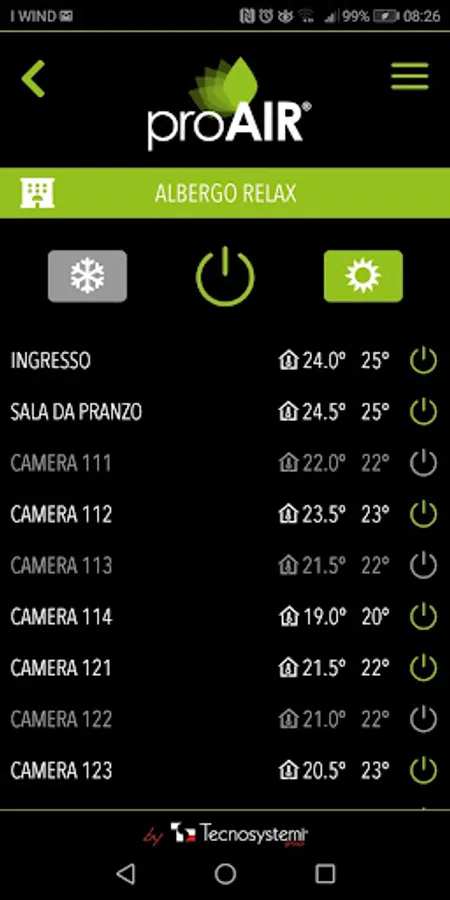 The application is used to control the system remotely and/or directly in situ, operating the system in real time, overriding the chronothermostats in the room from the comfort of your armchair.