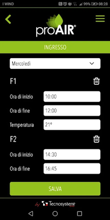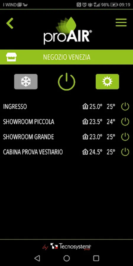 When you return home or enter the office, you will find the comfort you seek by using the simple adjustments that only a precise, rapid and reliable system such as ProAIR can provide: just modify the set time slot or turn the system on manually as and when required to avoid unwanted consumption and save energy