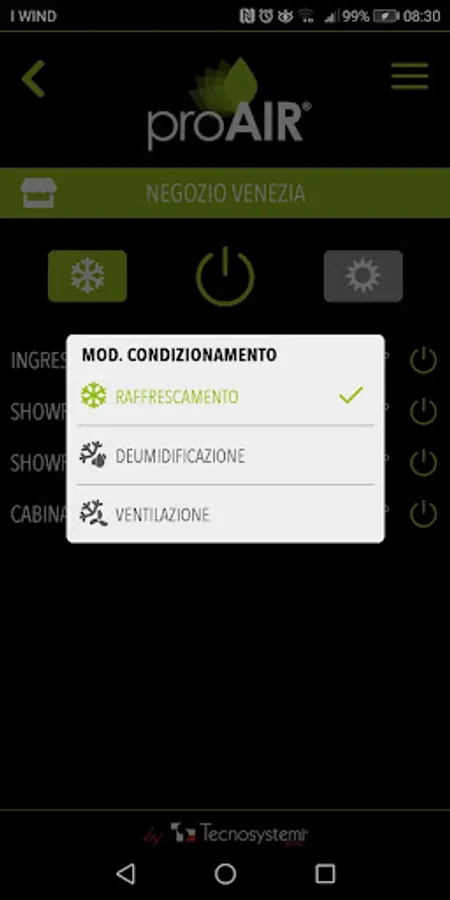- Set the system's operating mode (also for internal ducted systems if you have the Tecnosystemi communications protocol) 1
