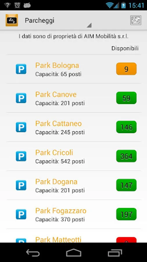 Thanks to AIM Mobilità s.r.l. you can get real-time informations about car parks in Vicenza.
