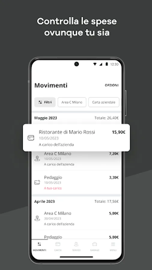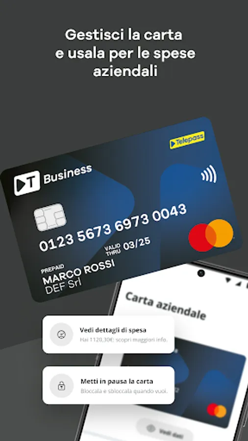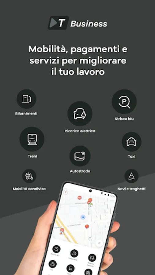 TBusiness is an application created by Telepass Spa and reserved for employees invited by their company. The services included depend on the package chosen by the company.