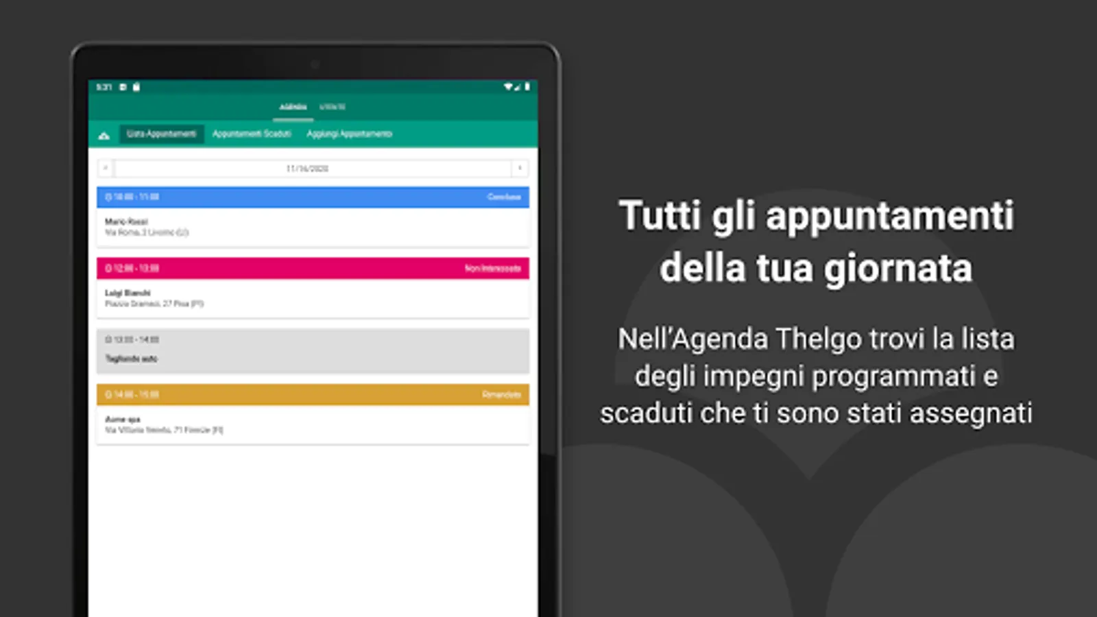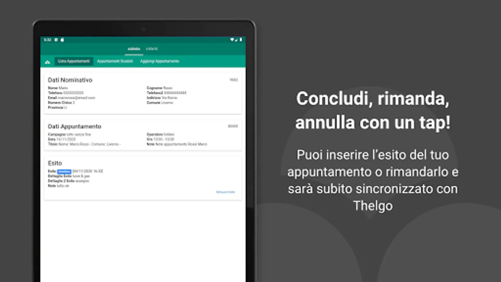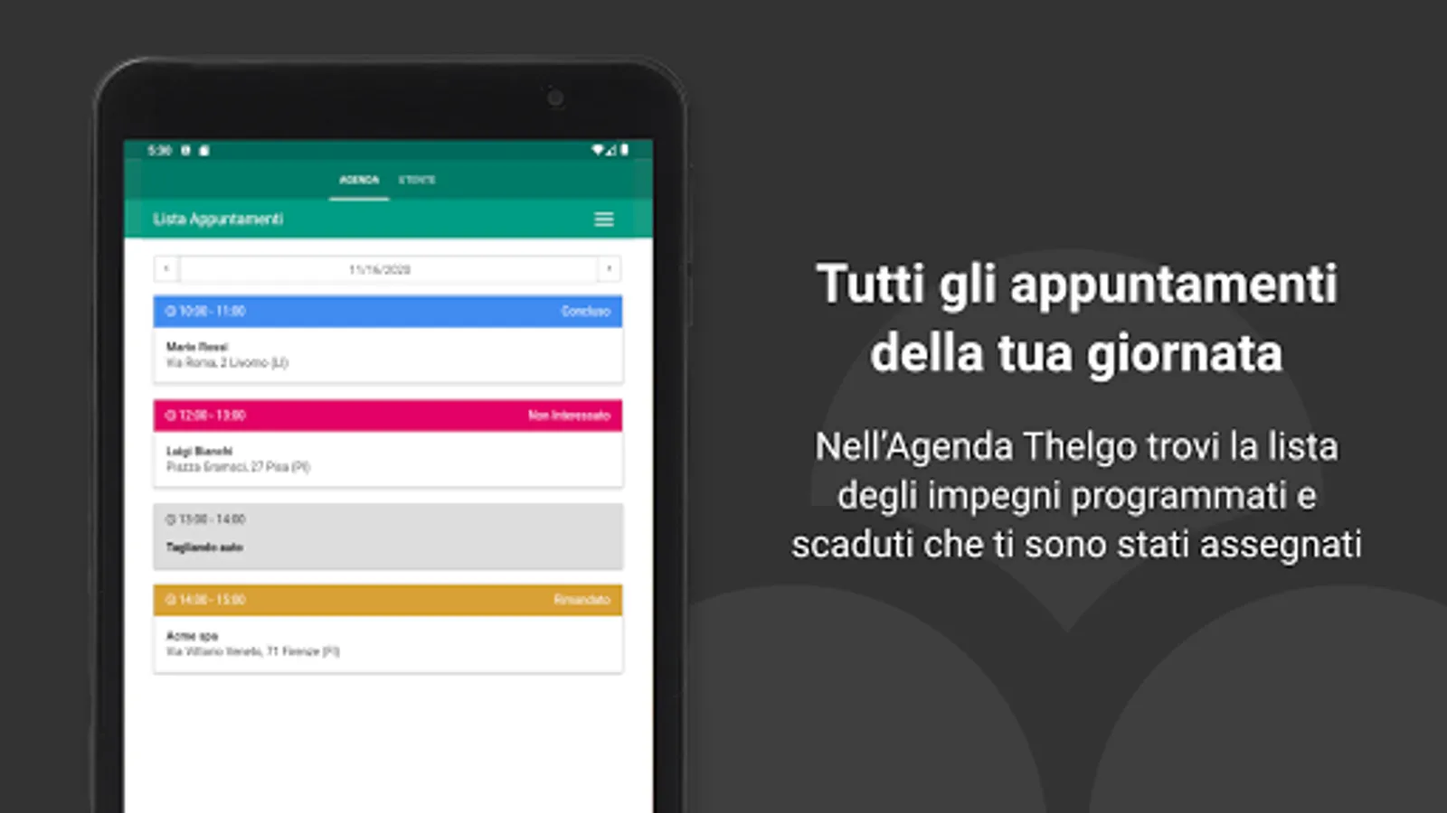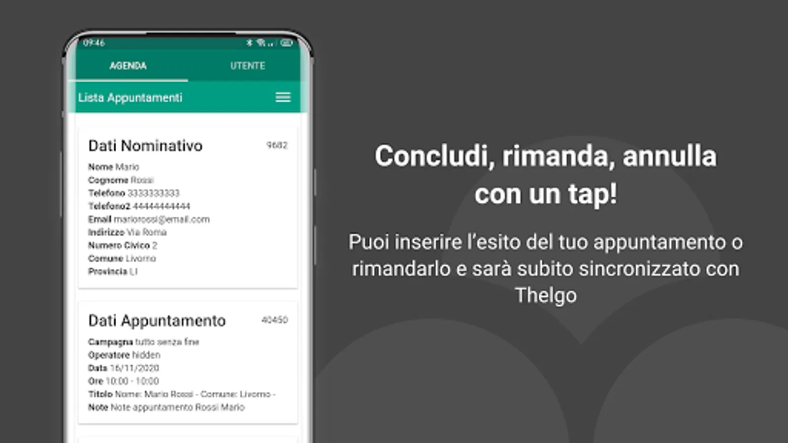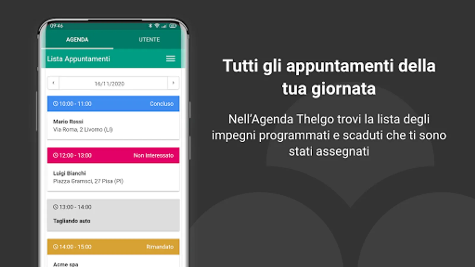 Thelgo Agenda allows you to consult and hesitate your appointments in the Thelgo CRM. You will be able to view the appointment data such as geo-location and activate navigation to reach the customer, or contact him by phone or email.