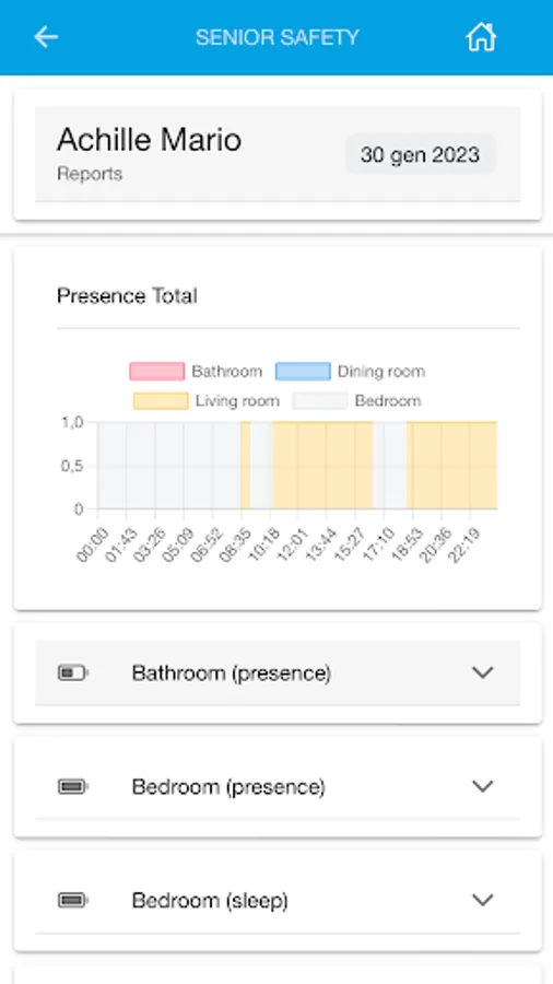 The Senior Safety App integrates IoT devices making the home and the outdoors where the elderly live a safe and always controlled environment. Through the installation of a Smart Home Kit in the subject's homes, we will be able to analyze the behavior, the state of health, the vital parameters, the movements thanks to the support of tutors and social workers. The app will allow you to set a reminder on the drugs to be administered, clinical, pharmacological, allergies, blood type records, all in compliance with current regulations (GDPR) to protect the citizen.