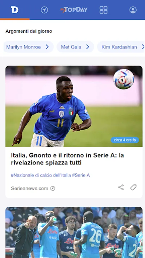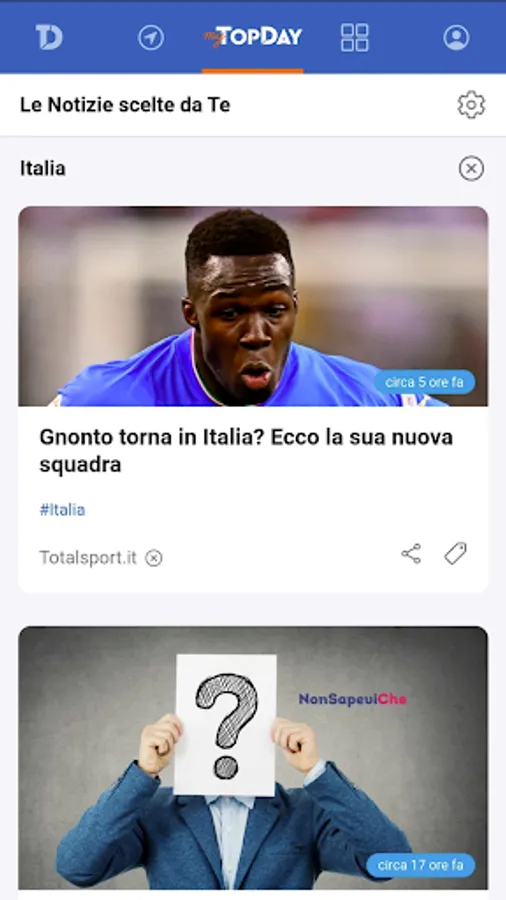 Browse Today and create your favorite "topics", the ones you don't want to miss and on which you want to stay up to date (politics, finance, sport, gossip) that you can always modify, according to your tastes and the contingencies of the moment, or based on what is happening around you.