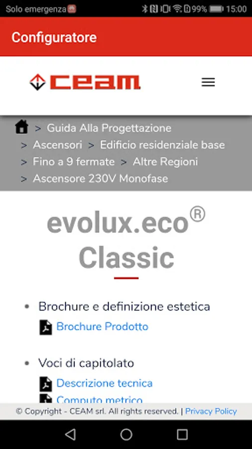 Simply indicating the type of building where you want to install your system, its stops and the region / province of installation, the Guide will lead you to the correct selection of your system, in terms of type, size, speed and accessories, taking into account all the regulations in force at national and local level.