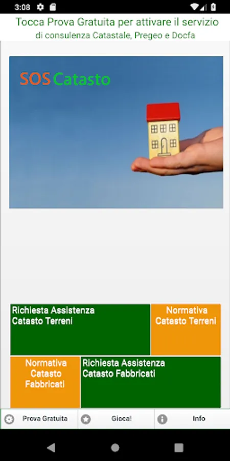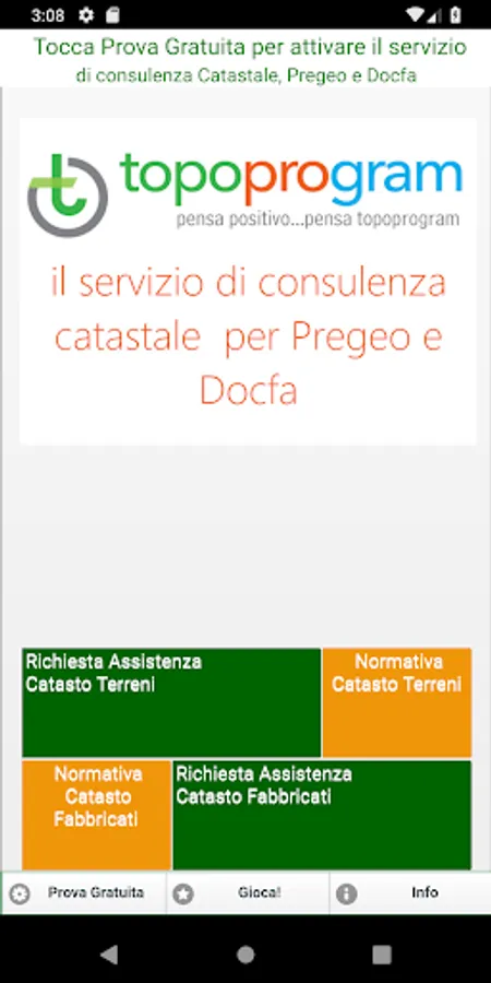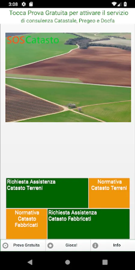 SOSCastasto make your free trial immediately. The app puts you in touch with your personal technical consultant of great experience in the field of land registry and building register (Pregeo and Docfa) to help you solve your problems and avoid suspensions. The experience of pinomangione and in-depth knowledge of the cadastral legislation have made this service a reference point for those working with Pregeo and Docfa.