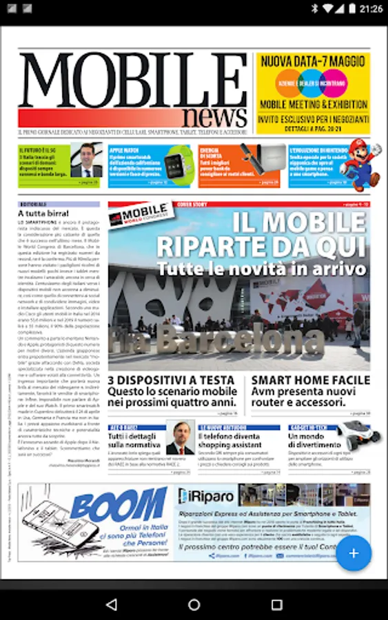 Free, it comes to smartphones, mobile phones, tablets and accessories and offers news, analysis, dossier and reportage from the main fairs of the sector, with the news of the managers and the world of mobile telephony.