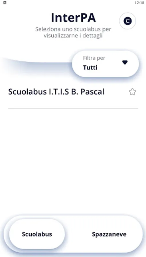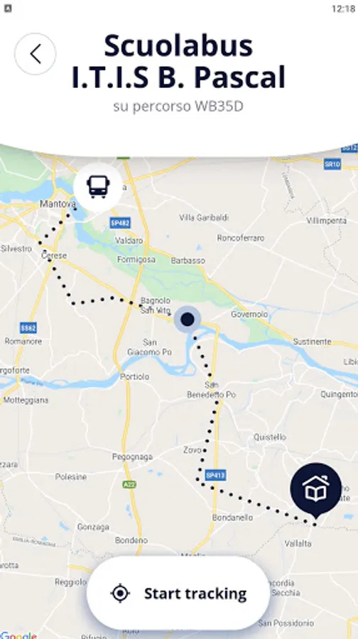 Once the application is launched, after the welcome screen, you will see in the "favorites" list the identification of the school bus of your interest from which you can receive information on the route taken. On the map, after activating "start tracking", you will be able to view the real time route of the chosen school bus and, subsequently, all the information relating to the vehicle and travel times.