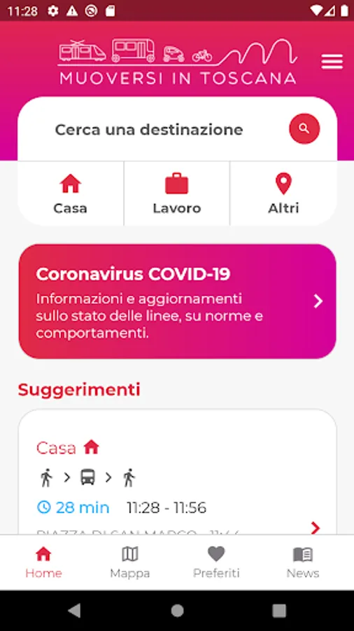 Moving in Tuscany is the App that allows you to access all the information of the public transport service of the Tuscany Region.