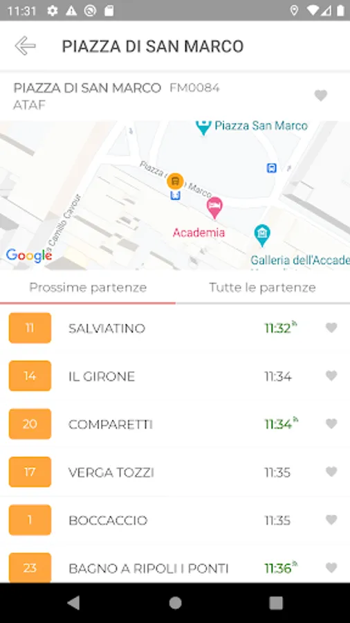 • find on the map the closest stops and stations, know the waiting times and the routes of the lines, also discovering the points of tourist interest in the vicinity;