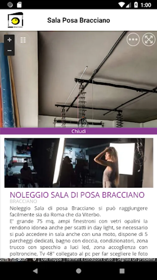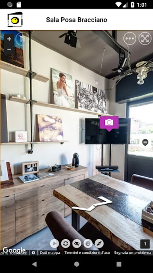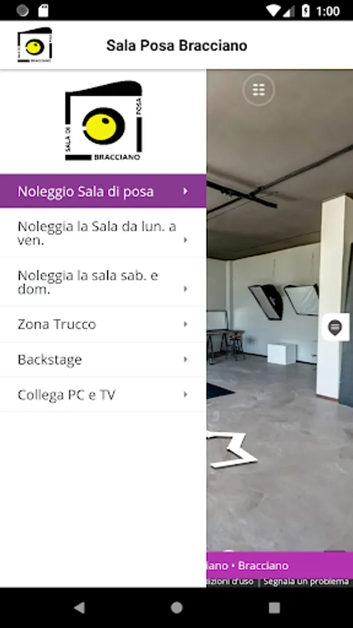 App practical and free to visit 360 ° from Bracciano smartphone installation room. With just a few simple steps to quickly access and view all updates, information on available equipment, book the room for a photo shoot, meetings or workshops. The app will be constantly updated content and allow viewing via Cardboard. The connection to social networks allow you to share the contents of the tour or add comments to like and what you're watching.