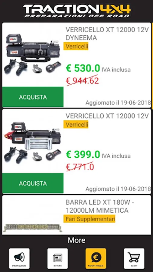 A convenient section where you can upload updates on prices with the ability to use the "buy" button to enter directly into the cart of the official site the product in question! The purchase can be conveniently completed using the same login credentials to the site www.tracion4x4.it