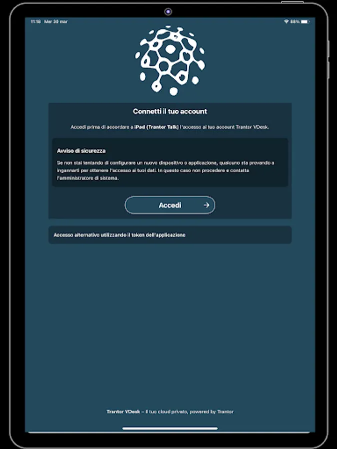 Trantor® Talk is an application developed by Trantor® to connect to Trantor® VDesk secure messaging and videoconference servers.