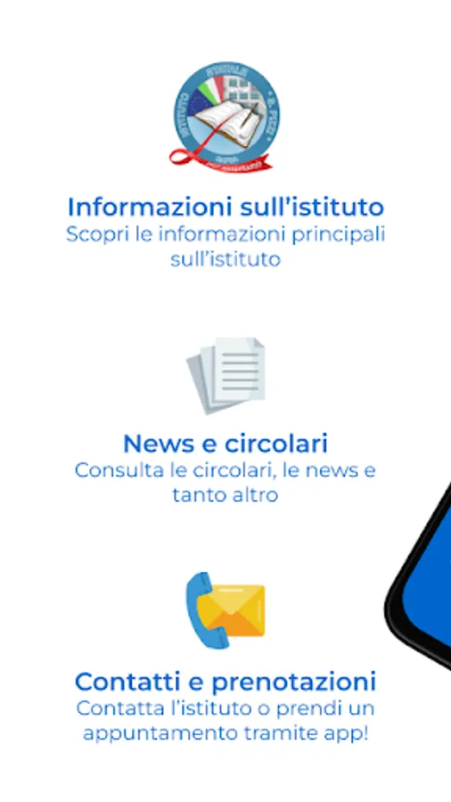 Discover the Pizzi High School app in Capua. You will be able to view all the information and contacts of the institute, consult the contents, receive push notifications based on your role and your interests, access the digital counter and book an appointment with the secretariat or the presidency.