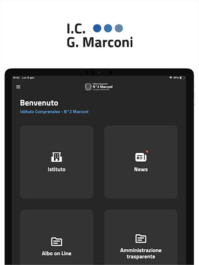 Discover the app of the Istituto Comprensivo n° 2 Marconi of Sant'Agata di Militello. You will be able to view all the information and contacts of the institute, consult the contents, receive push notifications based on your role and your interests, access the digital counter and book an appointment with the secretariat or the presidency.