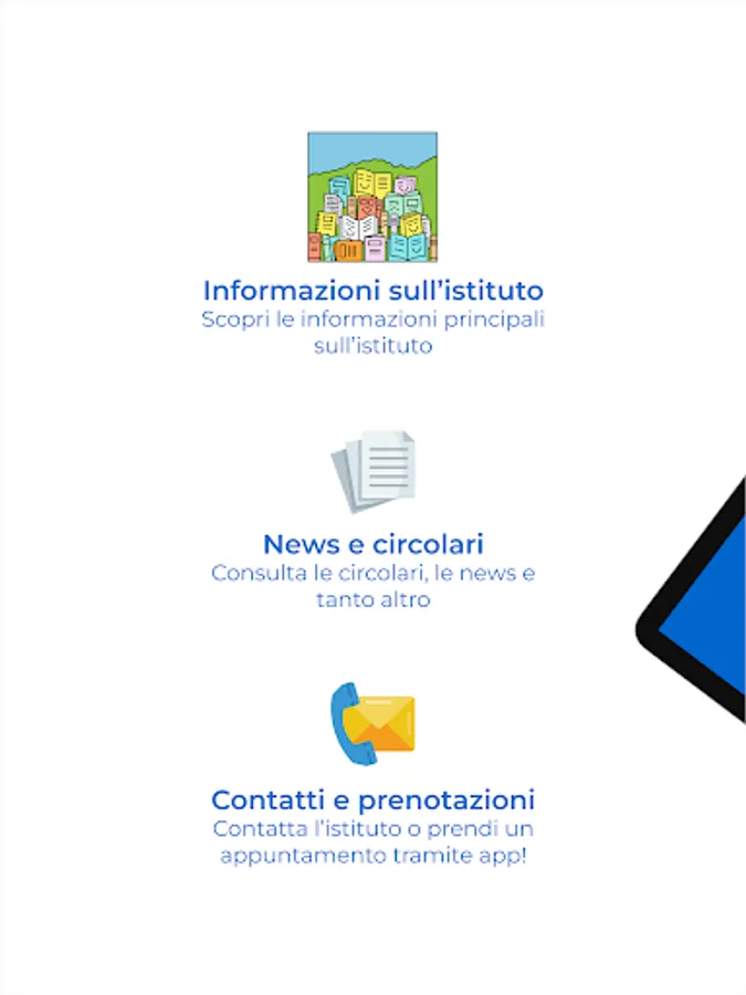 Discover the app of the Leonida Montanari Comprehensive Institute. You will be able to view all the information and contacts of the institute, consult the contents, receive push notifications based on your role and your interests, access the digital counter and book an appointment with the secretariat or the presidency.