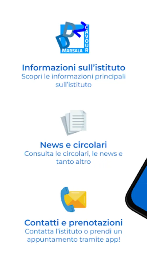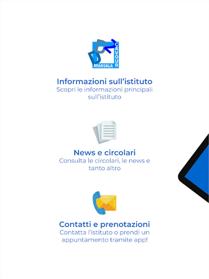 Discover the app of the Educational Directorate 2 Circolo Cavour of Marsala. You will be able to view all the information and contacts of the institute, consult the contents, receive push notifications based on your role and your interests, access the digital counter and book an appointment with the secretariat or the presidency.