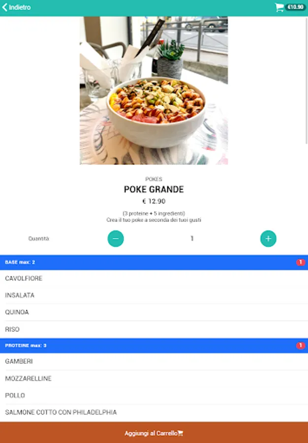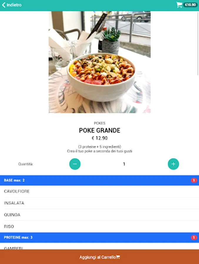 Choose the size, the base, the sauces, the main ingredient and all the others 🍚🦐🥑🥭🥗