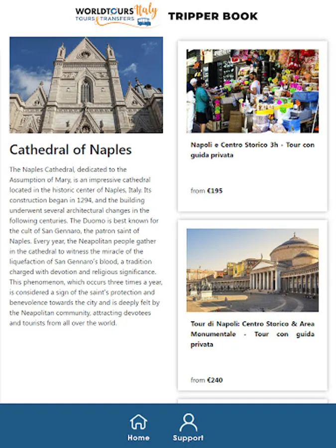 Tripper Book Worldtours displays the itinerary and route integrated with the most popular tourist attractions and points of interest: historical monuments, art museums, nature trails, and much more.