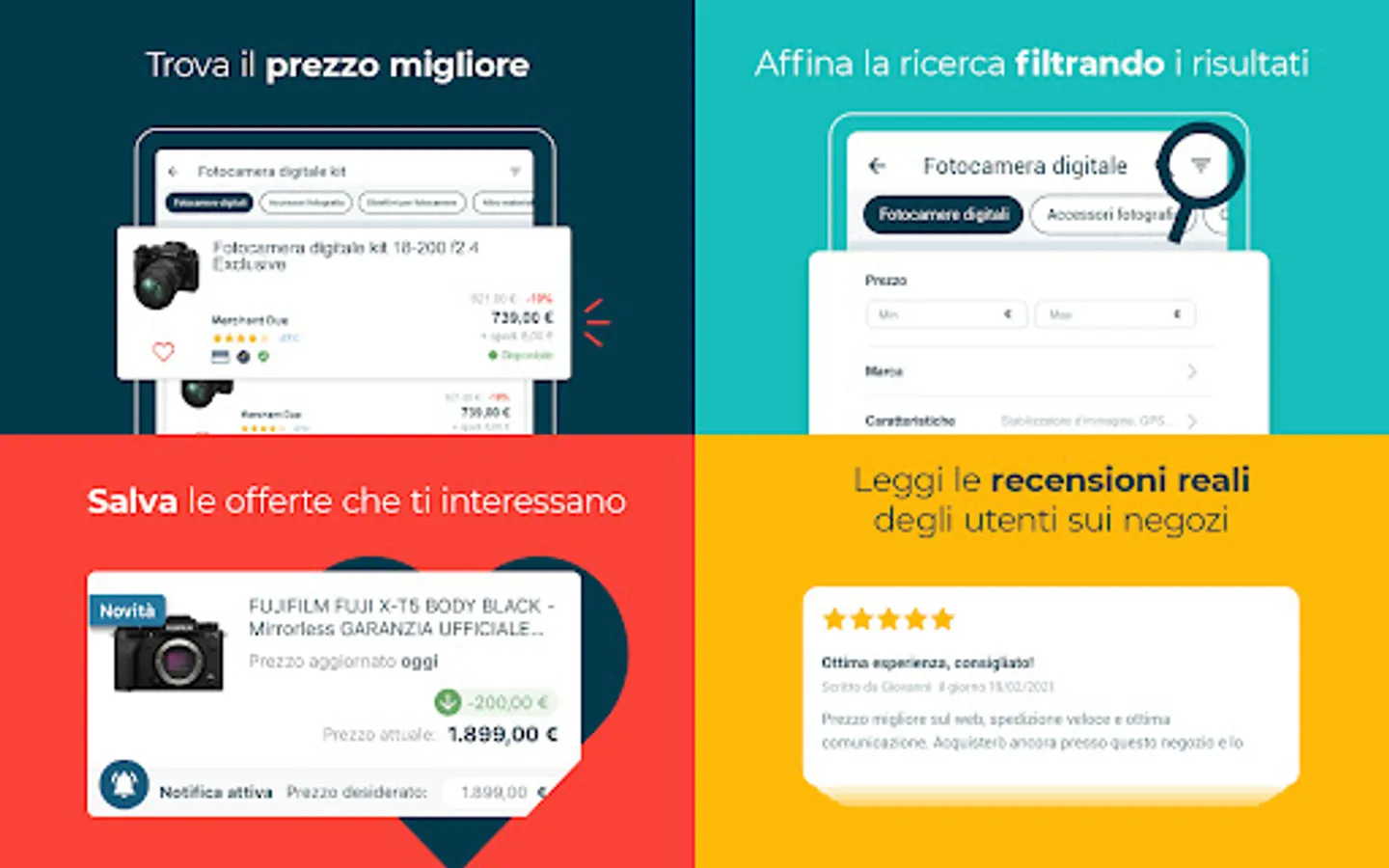 On the Trovaprezzi.it app you will find: