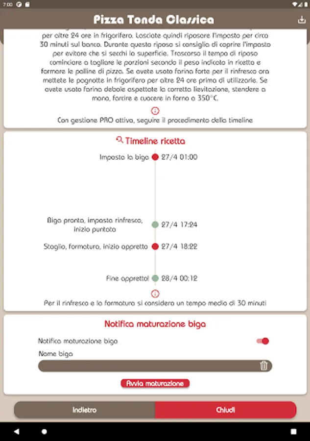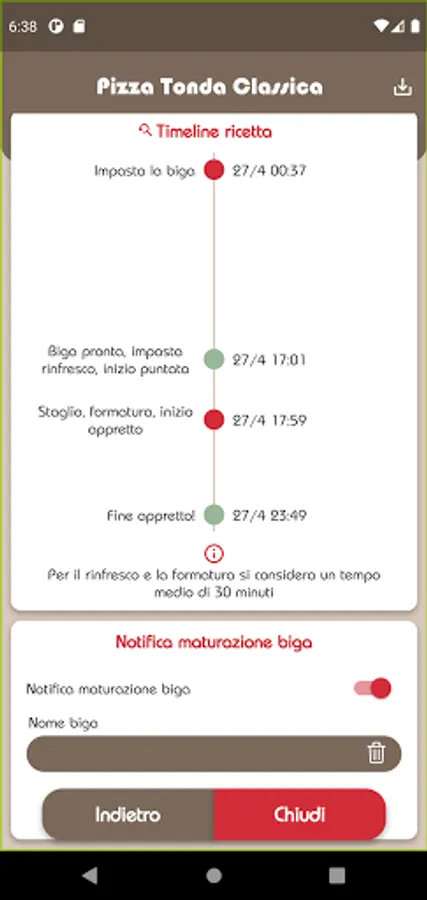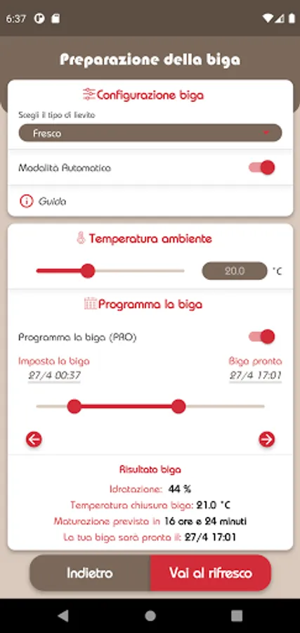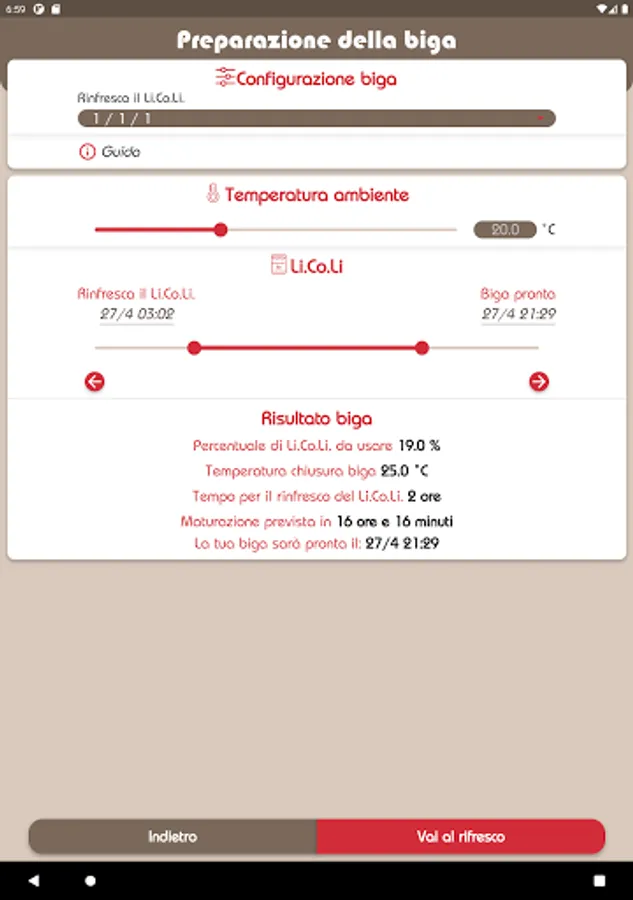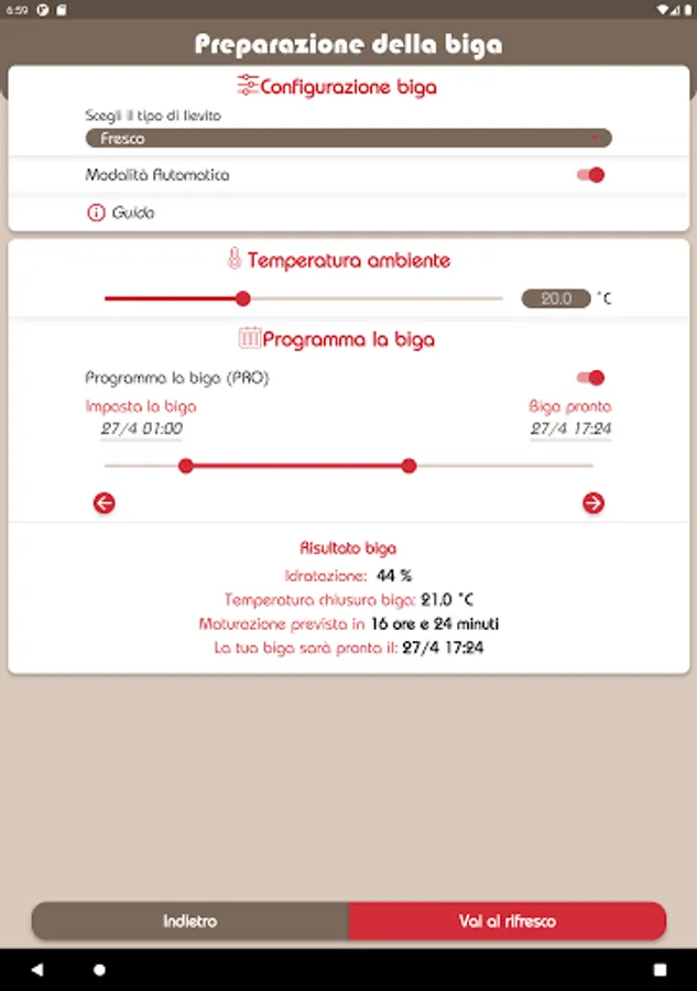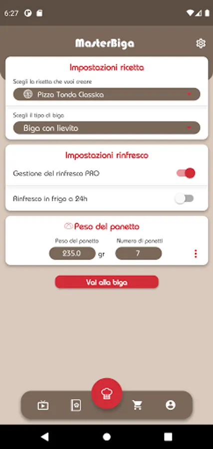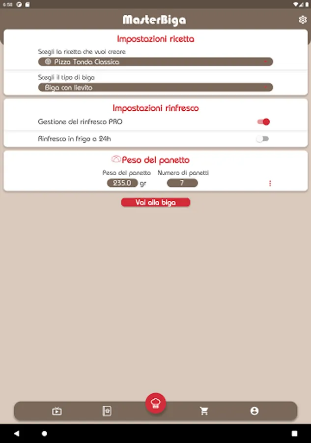 MasterBiga is a useful tool for the preparation of doughs with biga. The MasterBiga app allows you to know the times and methods for preparing an optimal biga without the use of professional equipment. And with the PRO packages it is also possible to calculate the biga with sourdough and the management of refreshments, from the dough of the biga to the oven!