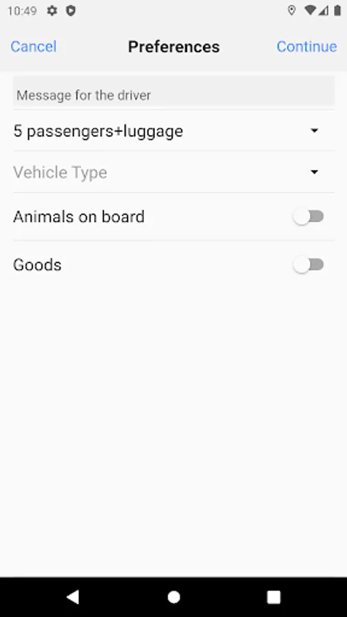 - You can choose a few options to customize your taxi ride