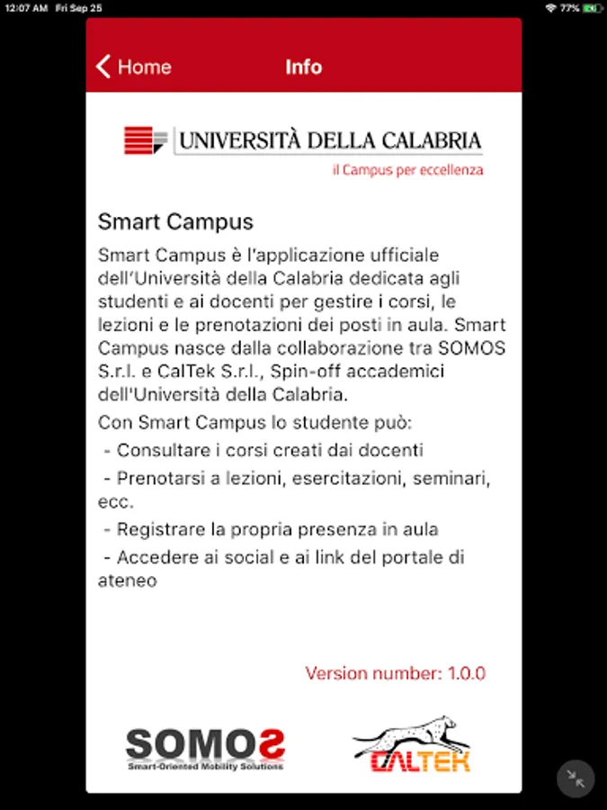 Smart Campus is the official app of the University of Calabria. With Smart Campus, teachers and students will be able to manage their return to the classroom safely and directly from their mobile device.