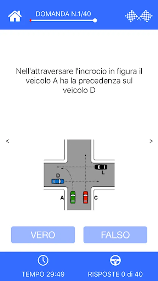 • it allows you to choose between the exercise of 20 questions or simulation of timed exam (40 questions in max 30 min.)