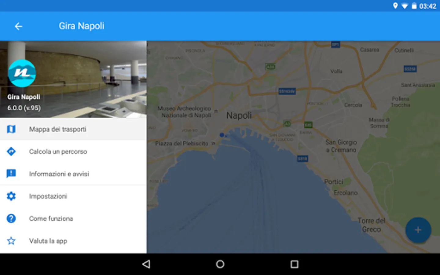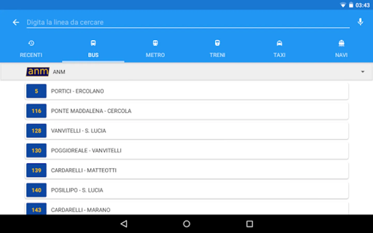 Developed in collaboration with the Federico II University of Naples, the Azienda Napoletana Mobilità (ANM) and Napolike.it was made available at no cost with an integrated service of transport information (bus, metro, funiculars, trains, taxi, ships).