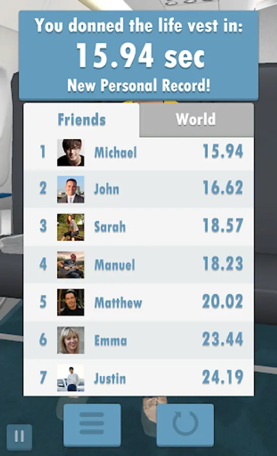 Through three different game levels, you can interact with the game character to make it wear the life vest properly and to hopefully jump out of the plane alive. You can also face time challenges and compare your results with those of your friends and other players.
