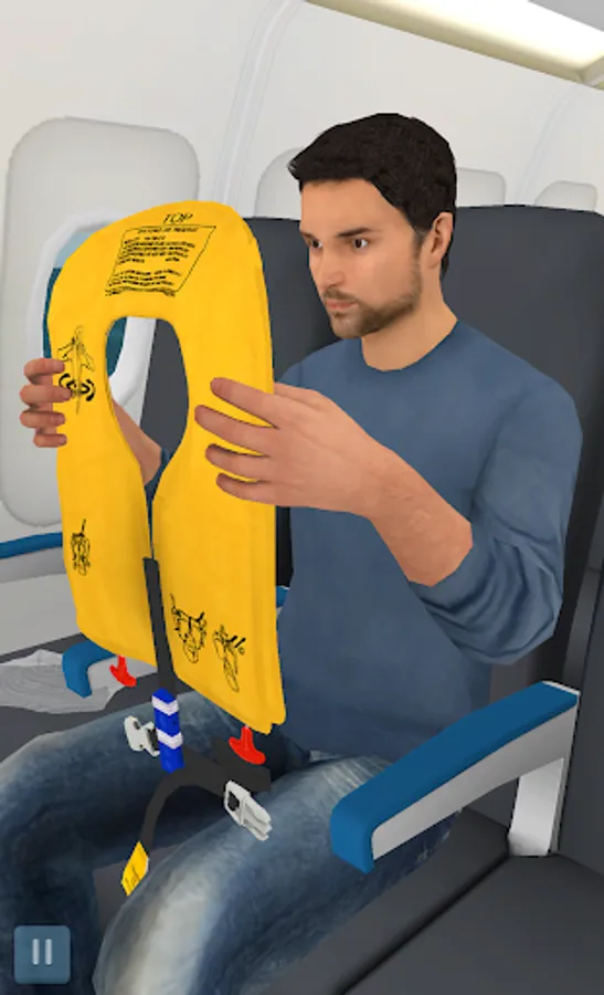 The 3D model of the life vest is an high-fidelity reproduction of a real vest used by many airlines.
