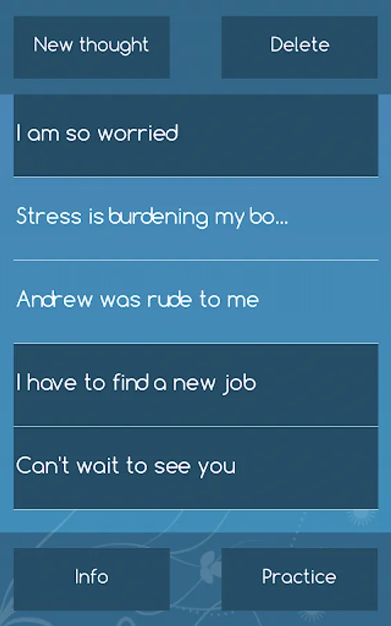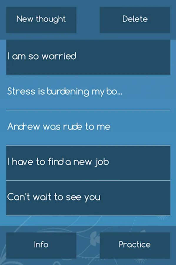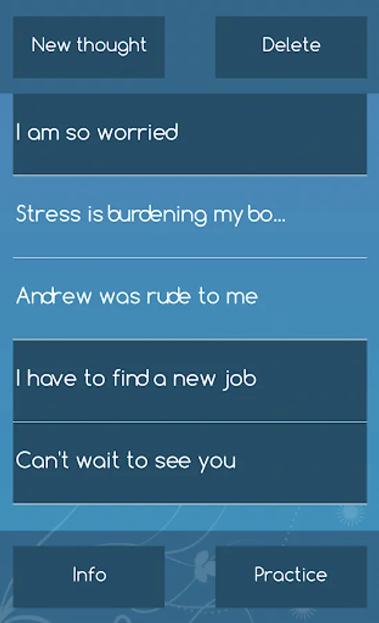 The AEON app helps users in practicing a mindfulness technique that requires individuals not to react in response to their thoughts, but to be aware of them and observe them while they are going away (distancing from thoughts).