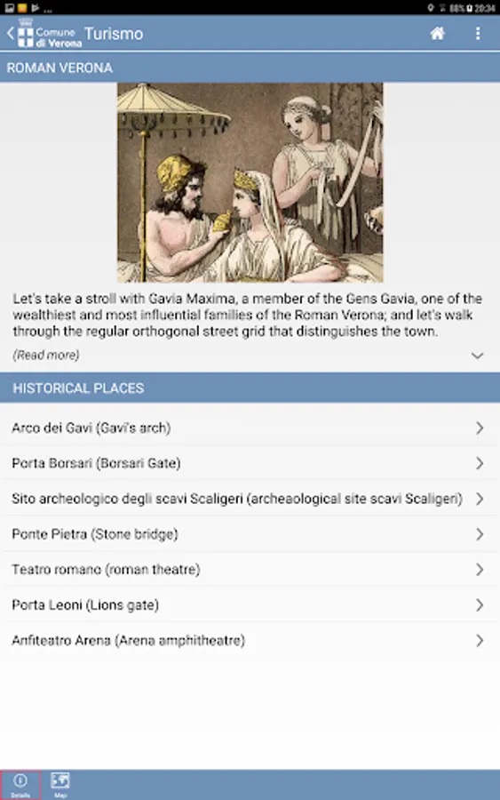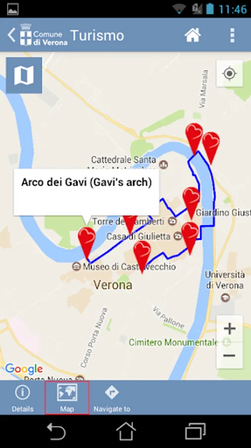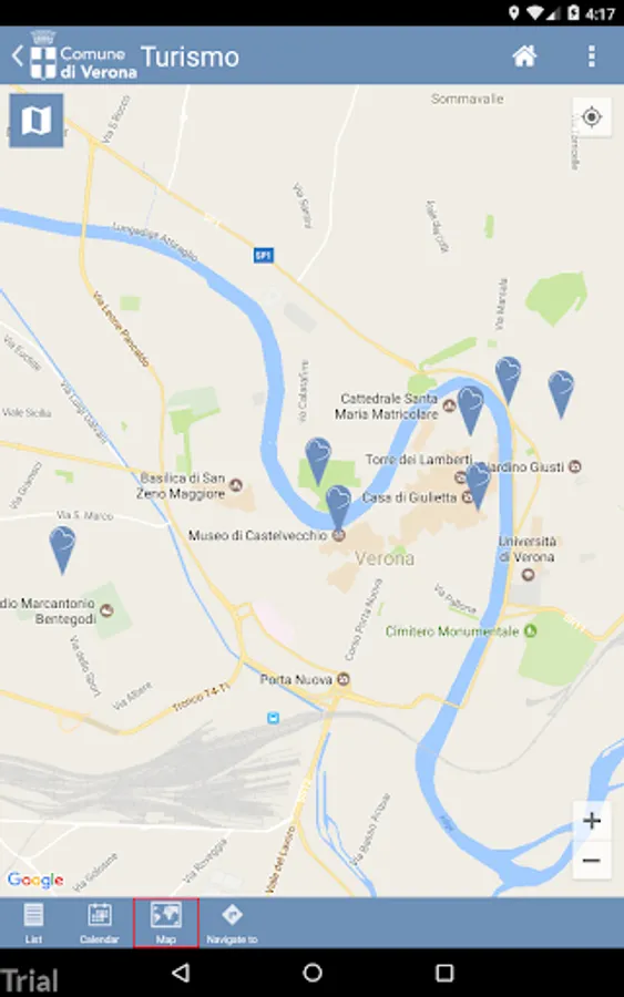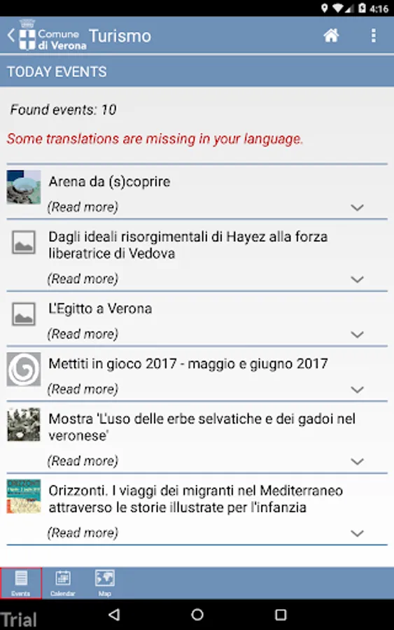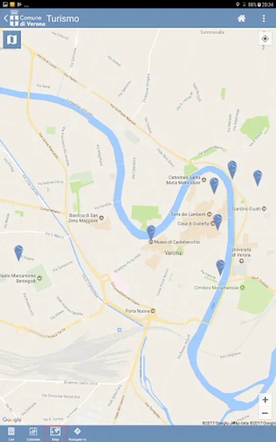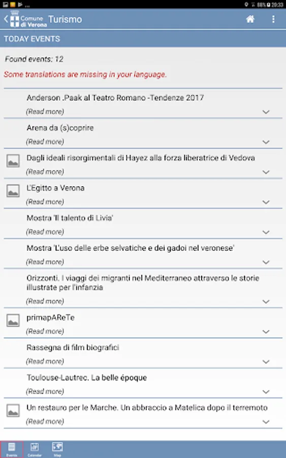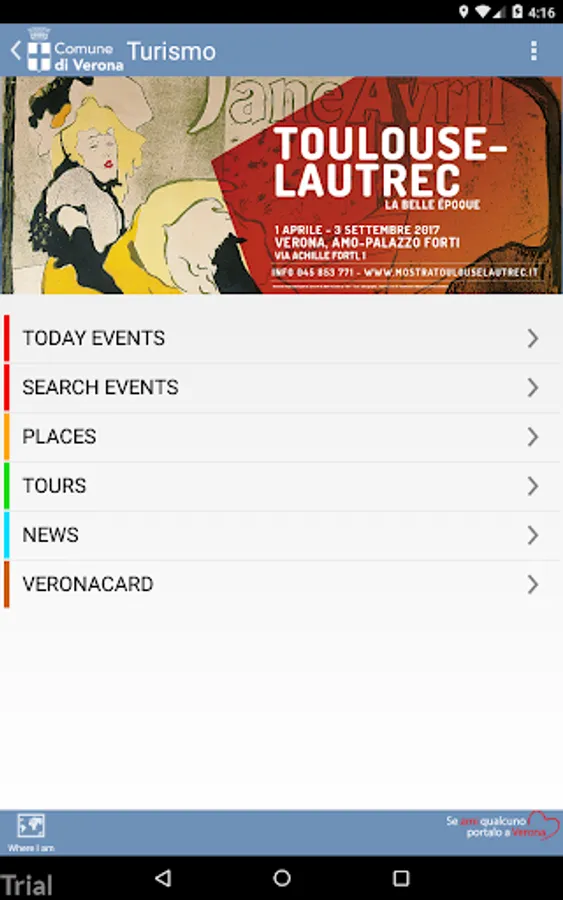 All the information are geolocalized. The APP follows you during your visit and helps you to find out all the events next to you.